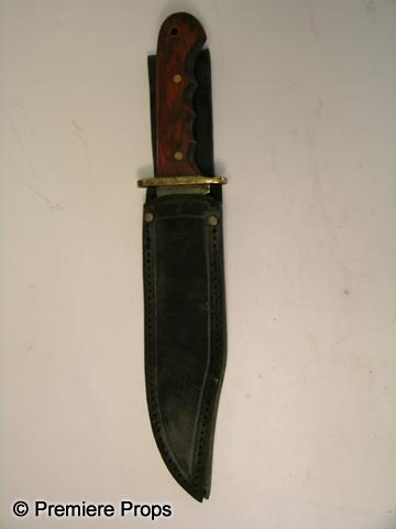 Inglourious Basterds - Screen used, hero, rusty bowie knife with dark red wooden handle and black leather sheath. (approx. 14" long, blade is approx. 2" wide)