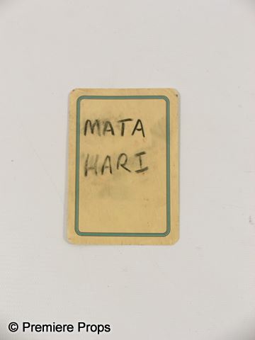 Straight from the set of Quentin Tarantino's critically acclaimed masterpiece, Inglourious Basterds, this is a hero, screen used, tan playing card with 'Mata Hari' written on the back. (approx. 3 3/4" x 2 3/4"). This is from the 'La Louisane' bar, card scene.