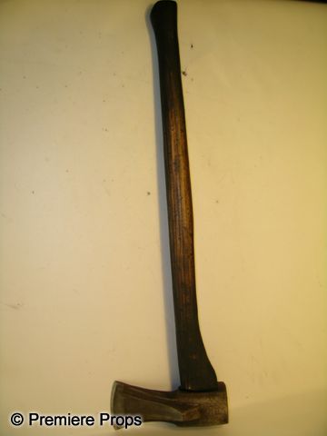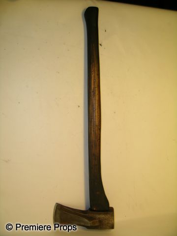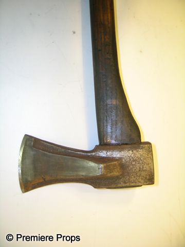 Straight from the set of Quentin Tarantino's critically acclaimed masterpiece, Inglourious Basterds, this is a rusted metal ax with thick wooden handle and thin sharp blade. Black, oval shaped markings are all over the handle. (approx. 27" long)