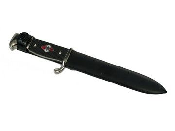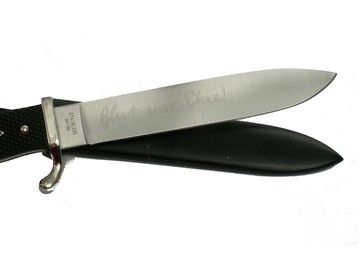 From Quentin Tarantino's stunning and controversial "Inglourious Basterds" this is a Nazi Prop Knife. It's blade is metal with metal sheath. The letters "BG" are engraved on the sheath.