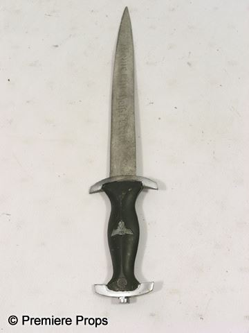 Sgt. Hugo Stiglitz (Til Schweiger) screen used, hero, dirty, silver rubber with 'Meine Flreheipt Triie' on the blade with black rubber handle and 'Nazi' symbol dagger. (approx. 13 1/2" long)