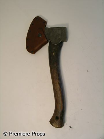 Straight from the archives, this is Shosanna Dreyfus (Mélanie Laurent), screen used, hero, rusty medieval axes with leather holster, two silver metal with wooden handle and one with same appearance but made of rubber. (approx. 14.5" by 6")