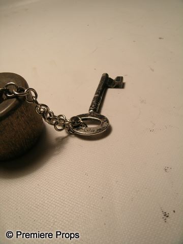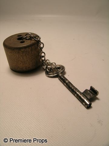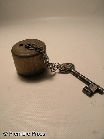Straight from the archives, this is Shosanna Dreyfus (Mélanie Laurent) screen used, hero, black metal key with scratches attached to dirty wooden cork with metal chain. (approx. 5"X1.5")