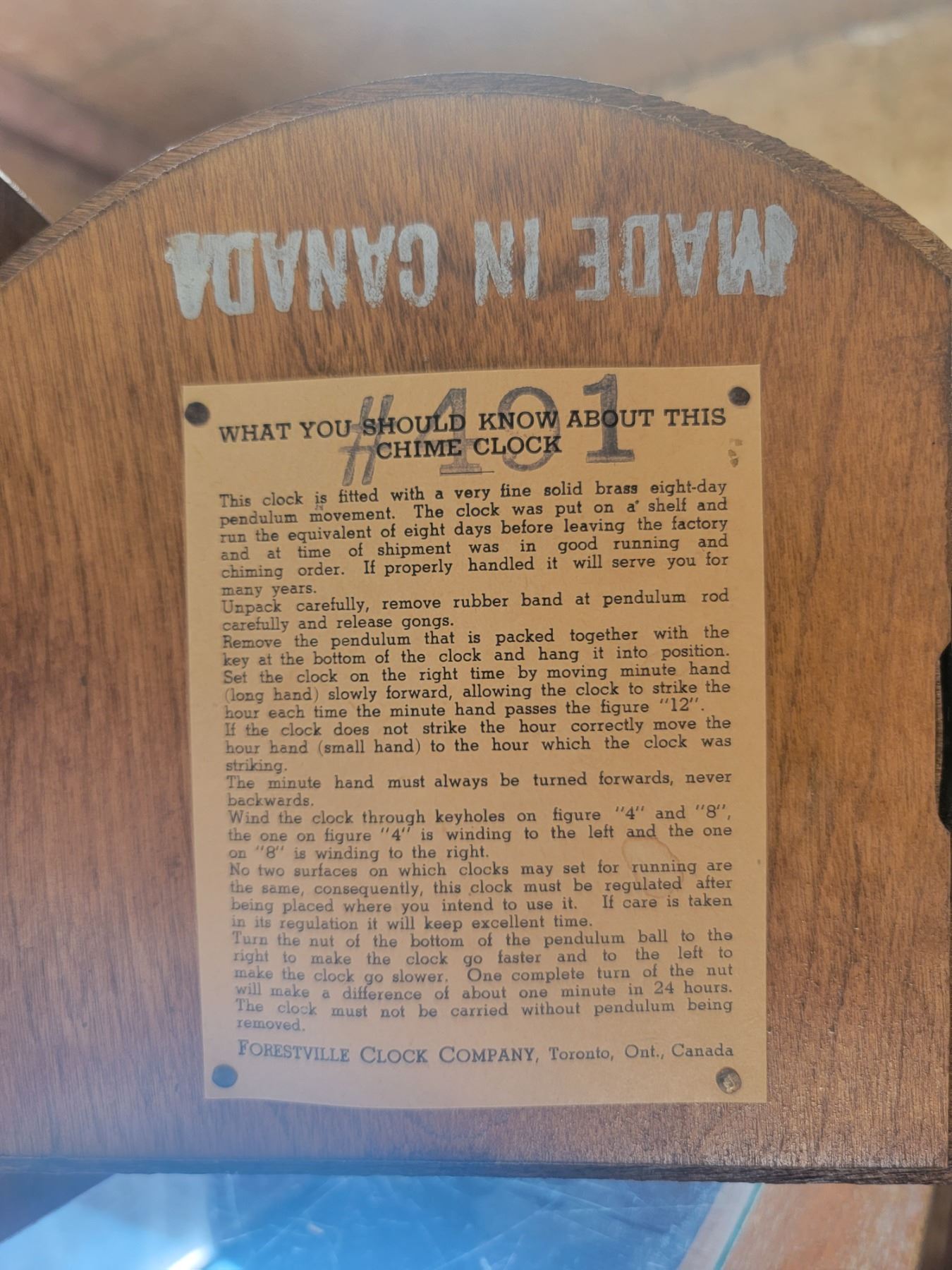 Ingraham Forestville mantel chime clock w/ key & pendulum, working