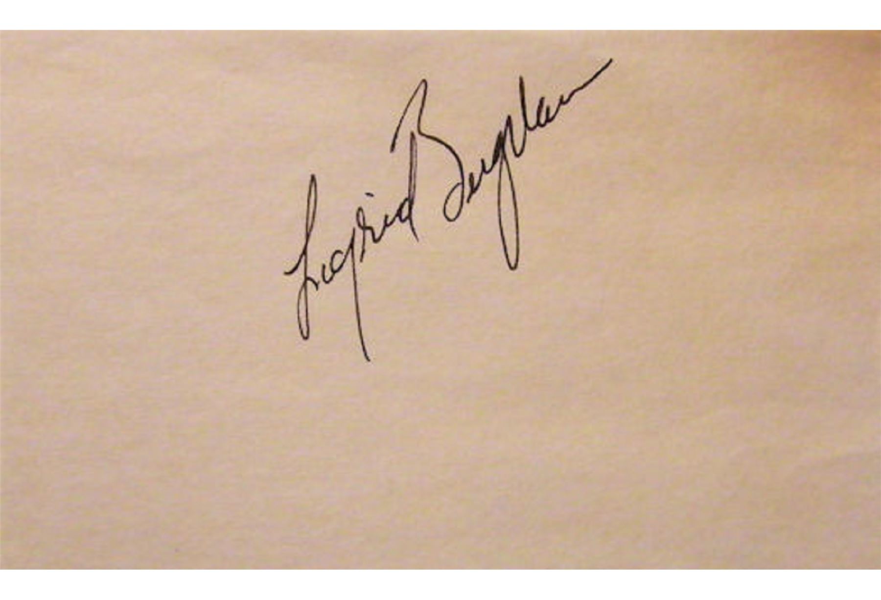 Ingrid Bergman 5 1/4in. by 3 1/2 in. signature slip