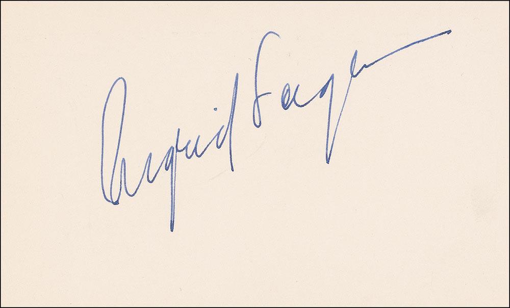 Vintage in-person ink signature, “Ingrid Bergman,” on an off-white 5 x 3 card. In very fine condition.