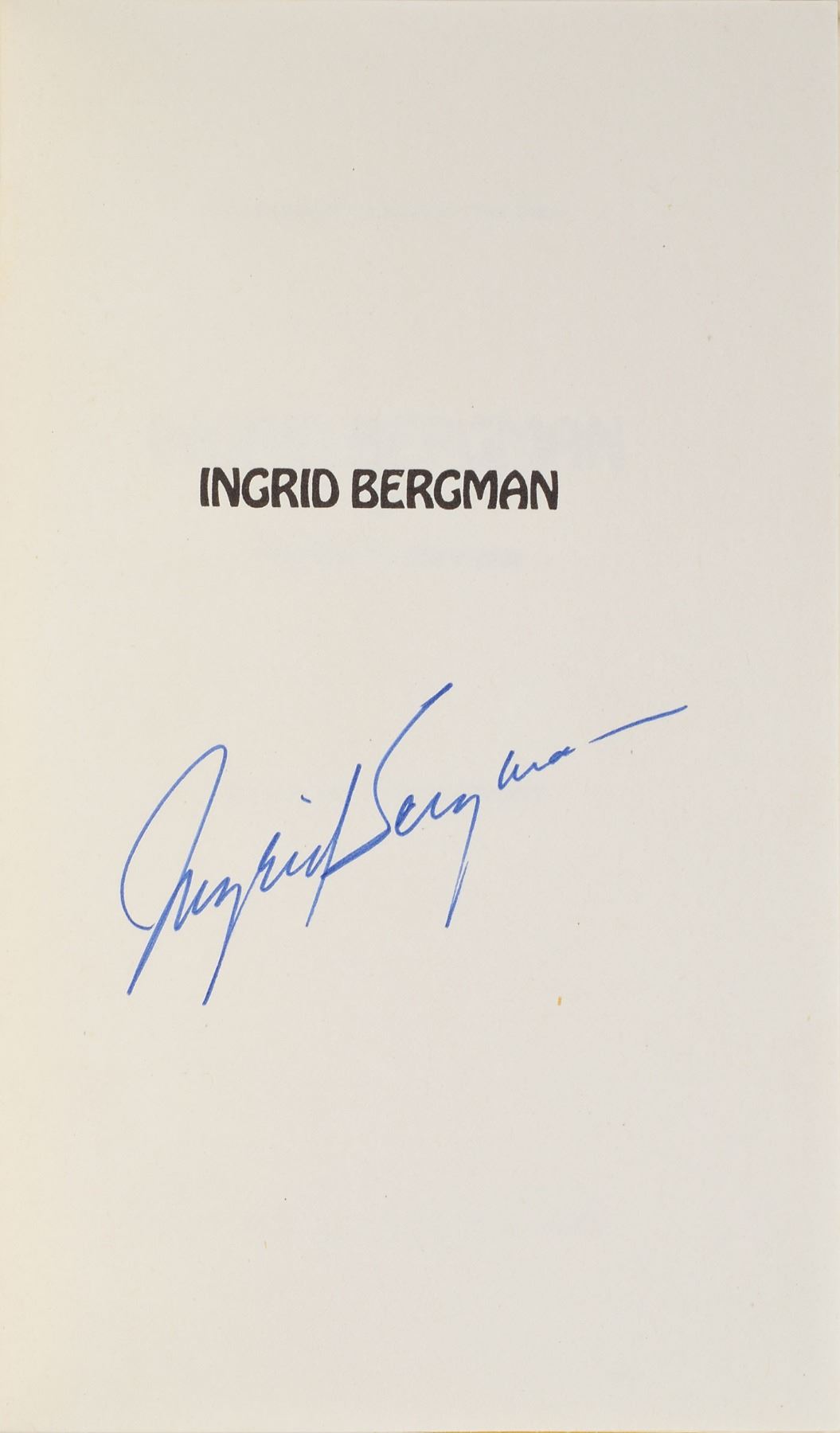 Two books signed on the half-title page in black felt tip by Ingrid Bergman: a softcover copy of Ingrid Bergman: Pyramid Illustrated History of Movies, and a hardcover copy of Ingrid Bergman: The Pictorial Treasury of Film Stars, with dust jacket. In overall fine condition, with light cover wear.