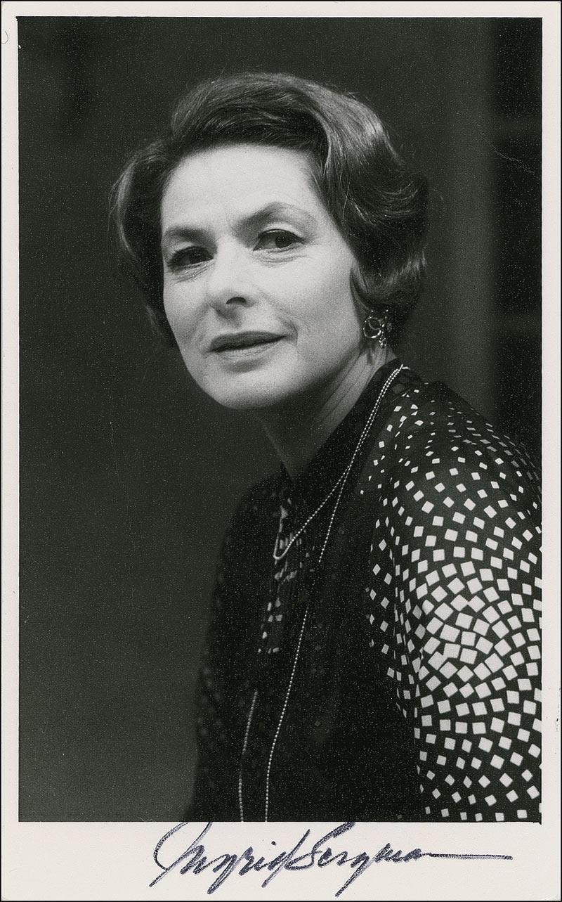 Matte-finish 4 x 6.5 photo of Bergman later in life, signed in black felt tip. In very good condition, with two moderate vertical creases along the left side and an upper right corner crease. Pre-certified PSA/DNA and RRAuction COA.