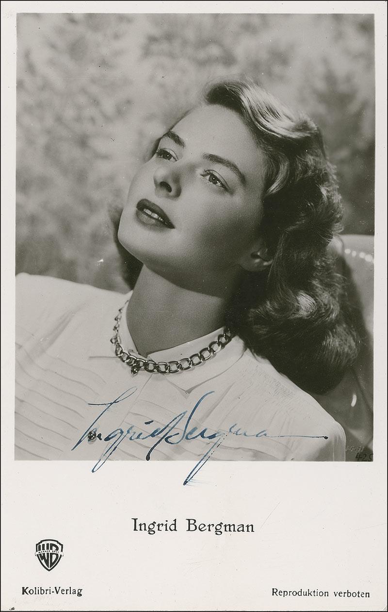 Glamorous vintage 3.5 x 5.5 cardstock photo, signed in fountain pen. Irregular ink adhesion to last few letters of signature, and a circular impression to facial area, otherwise fine condition.