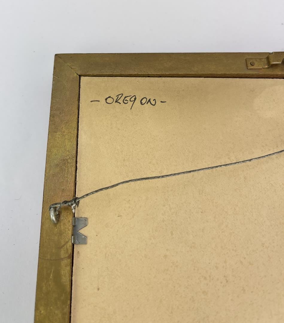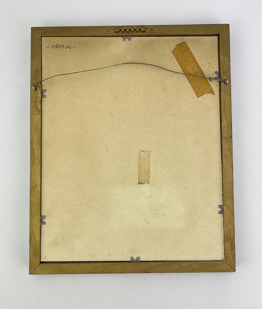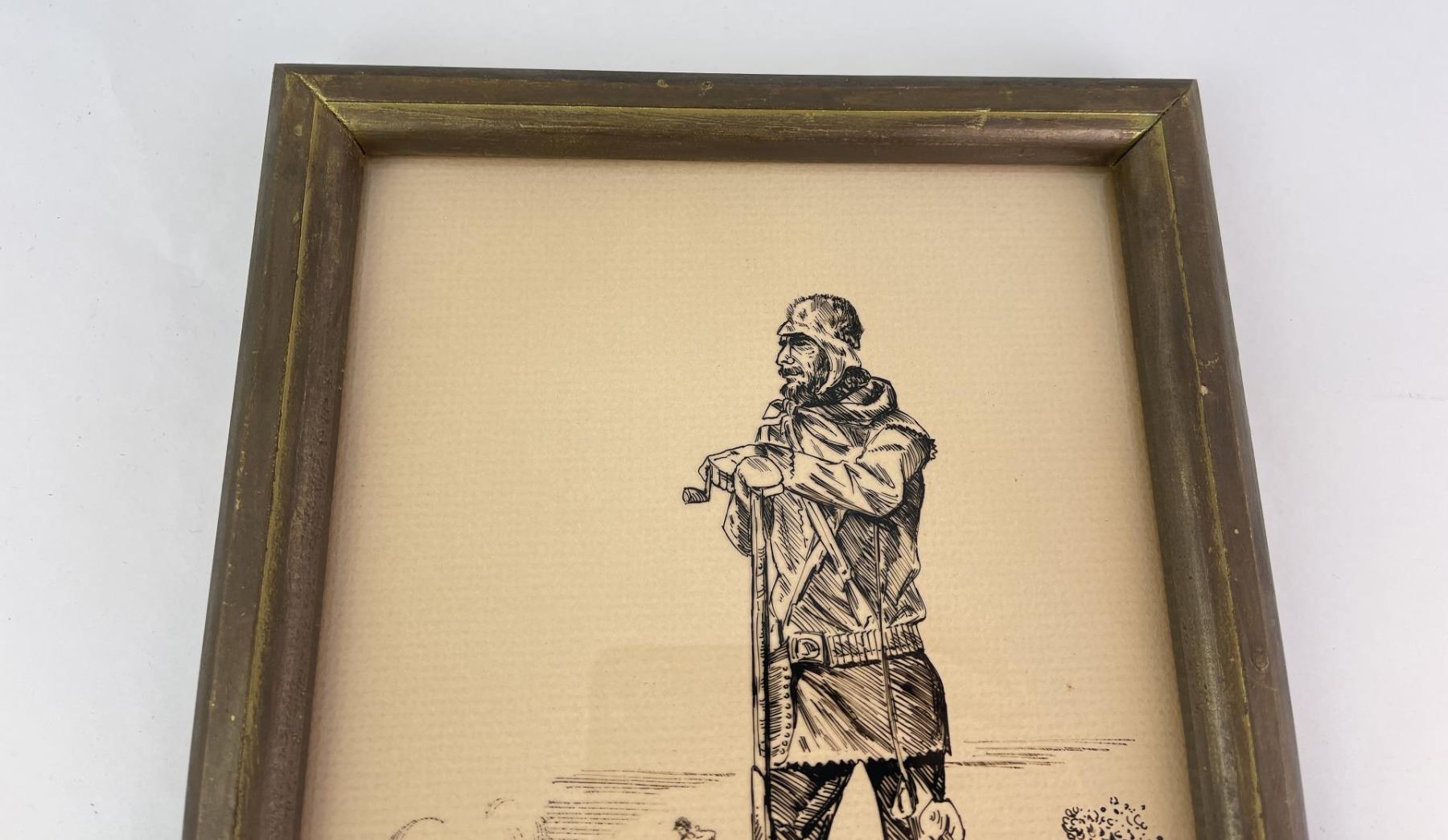 Neat drawing. Signed as shown. Man hunting a buffalo in the background. 9" by 11" framed.