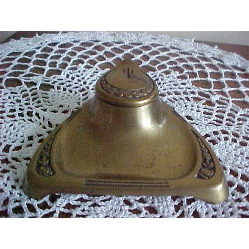 Ink Well Stand, Brass, Swivel cover; excellent condition; 5" wide X 4.5" deep X 2" tall