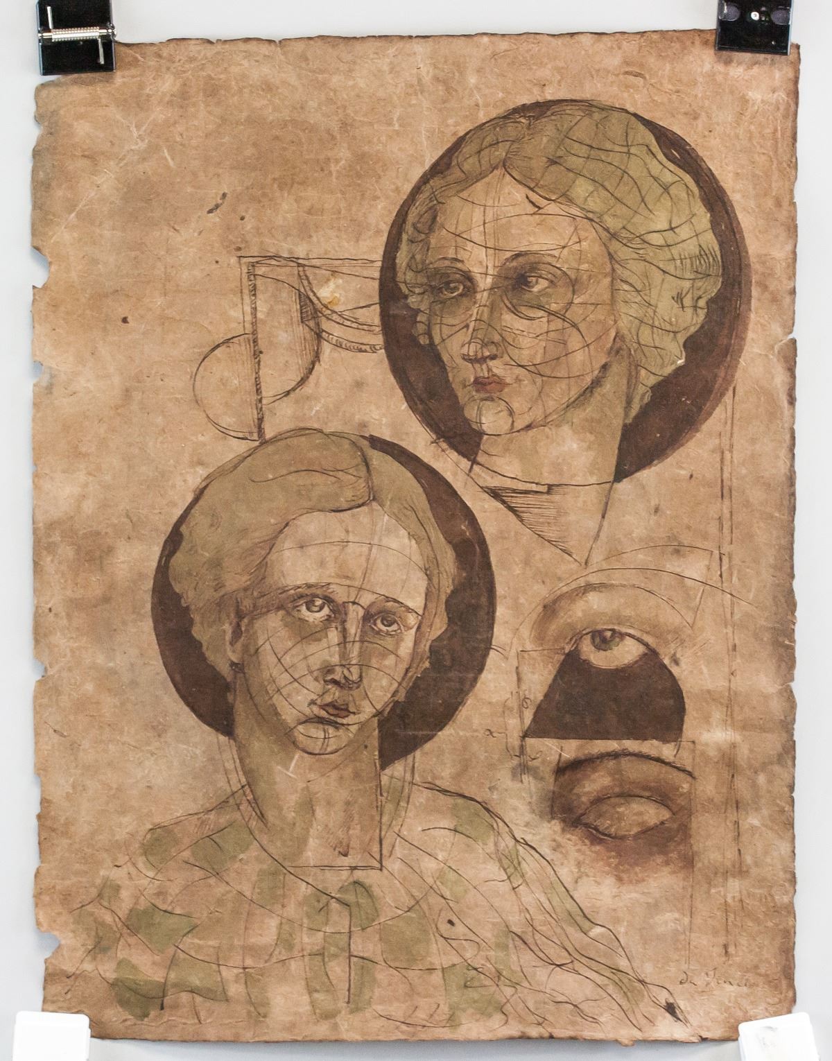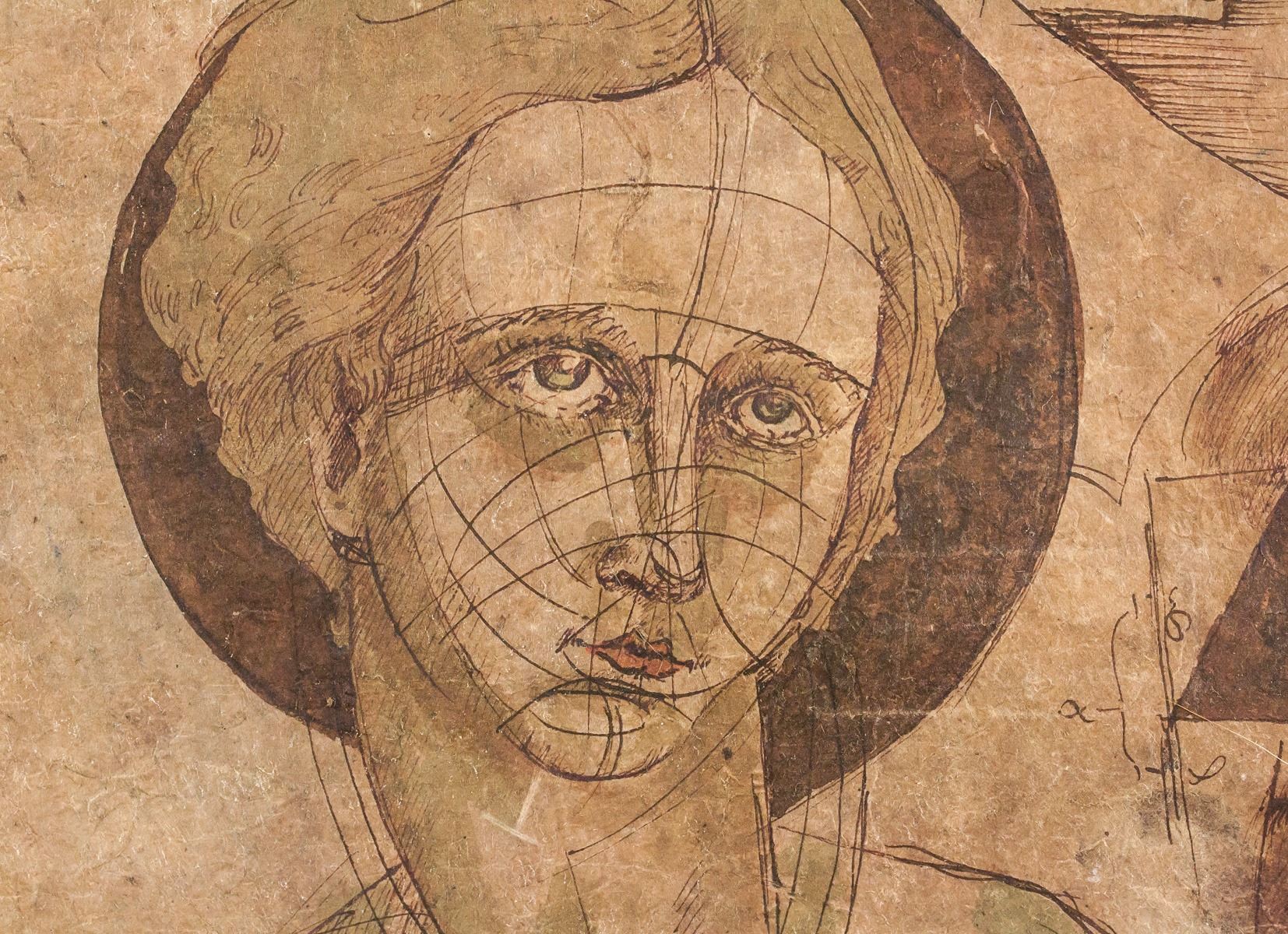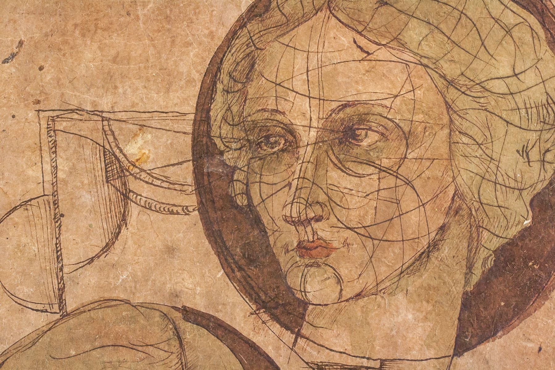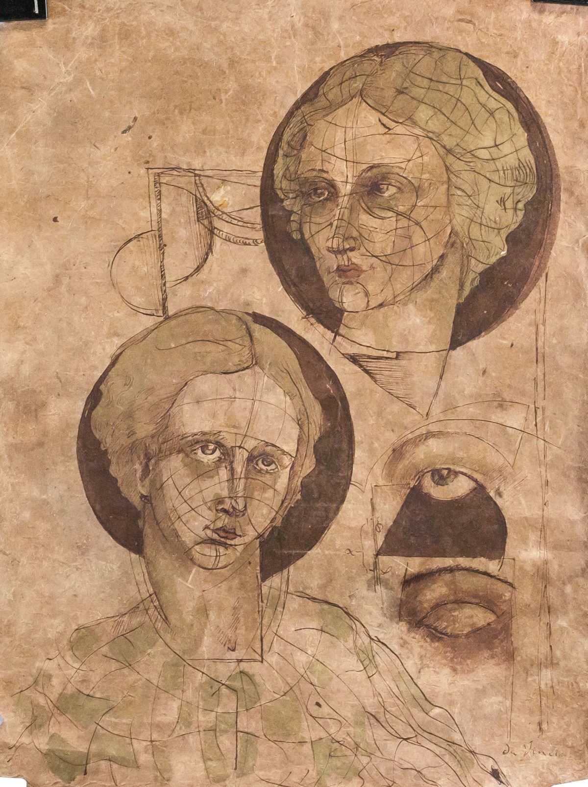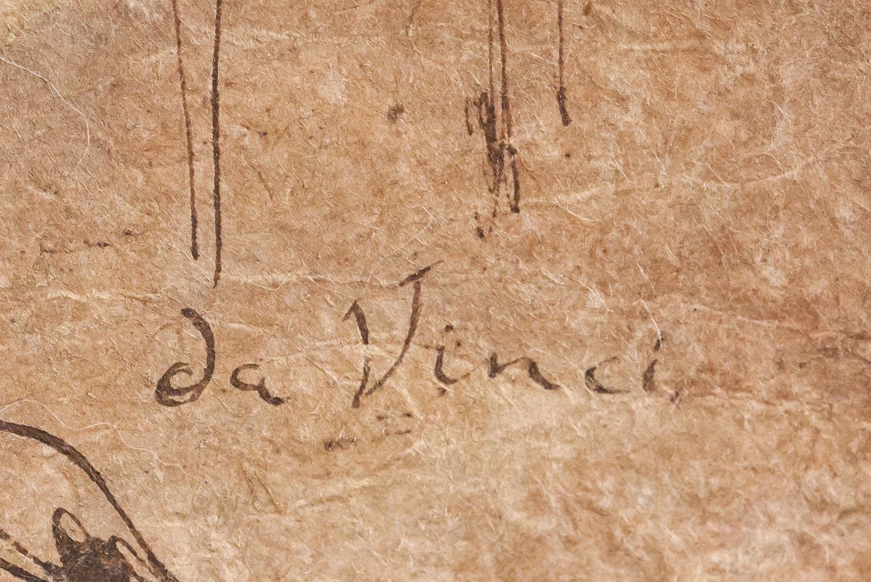Ink on paper. Two portrait sketches of a woman. Signed "da Vinci" in the bottom right corner. Stamped illegibly on verso. Label affixed to verso inscribed with "L. da Vinci RN12.19". After Leonardo da Vinci (1452-1519, Italian). 49.5 x 38 cm (19.5 x 15 inches).