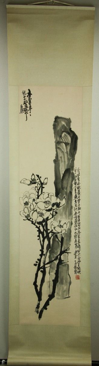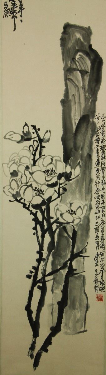 Orchid and craggy rock; Chinese ink on paper; hanging scroll; signed Wu Changshuo and inscribed with one artist seal; 194 cm × 46 cm
