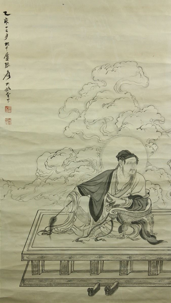 Immortal figure; Chinese ink on paper; hanging scroll; signed Zhang Daqian and inscribed with two artist seals; 115 cm × 58.5 cm