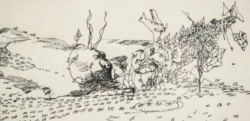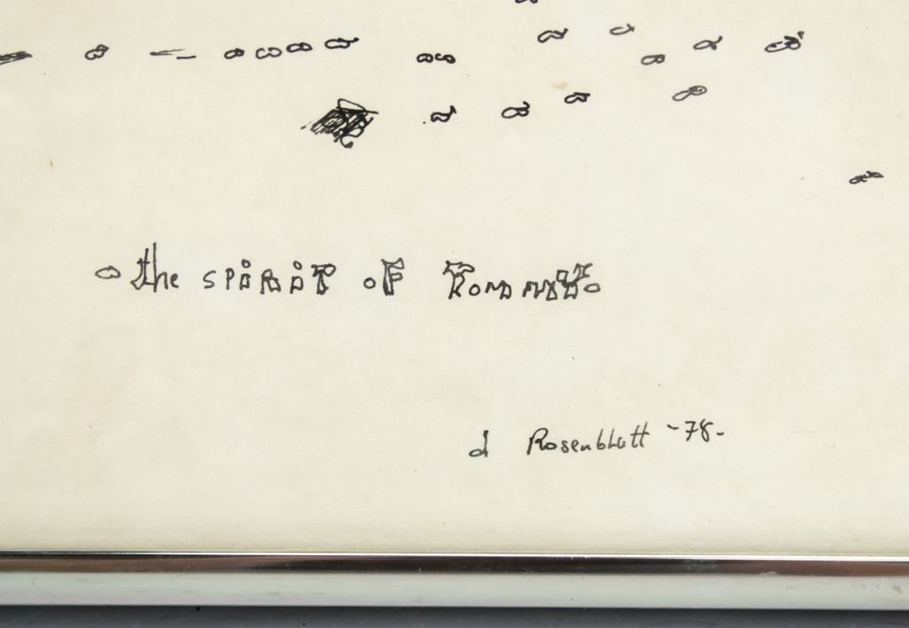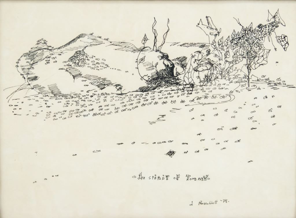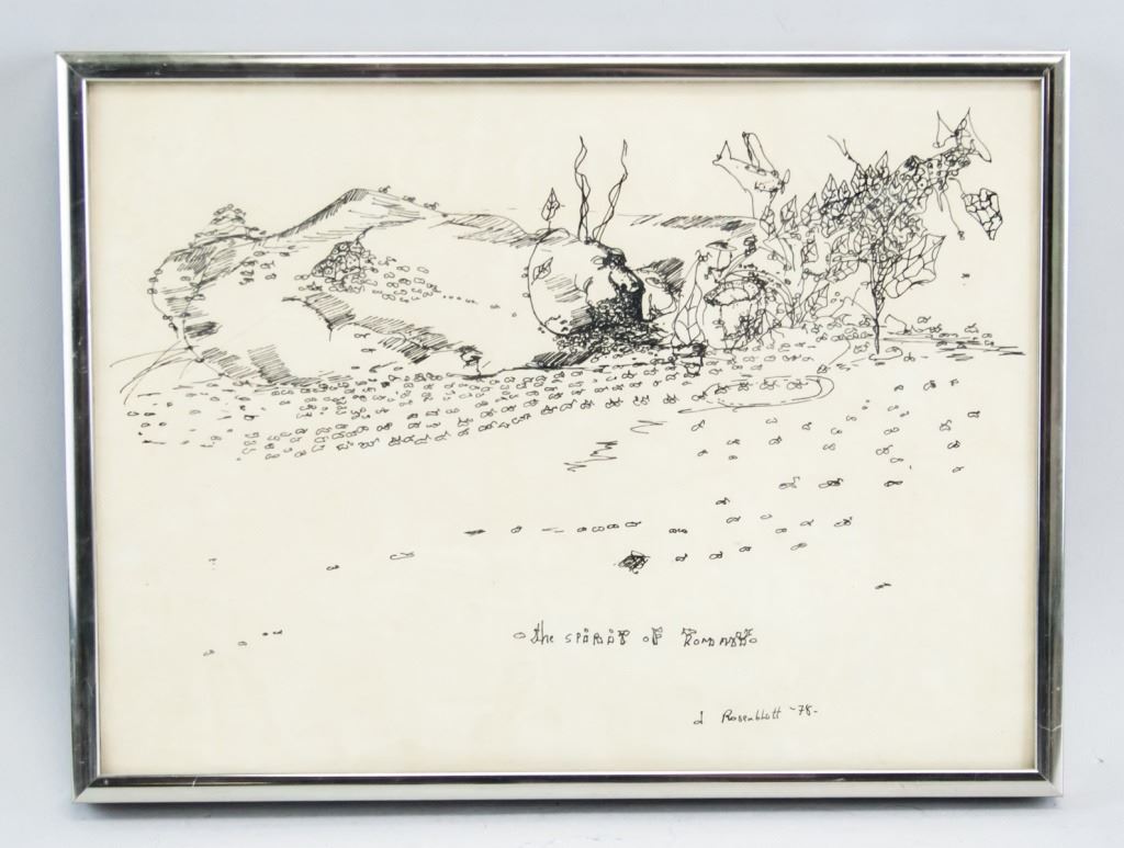 Ink on paper, framed. Featuring landscape line drawing. Signed "J Rosenblatt" to the bottom, with "78" inscribed beside the signature. 20 x 27 cm (8 x 10.5 in), Frame: 22 x 29 cm (8.5 x 11.5 in).