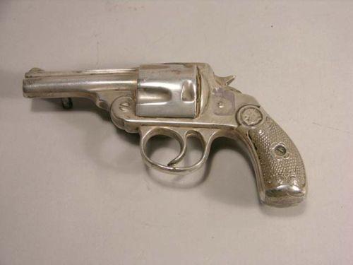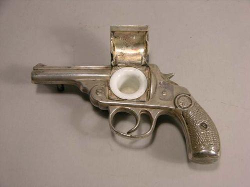 Inkwell in shape of Saturday night special - nickel plated. Ex. cond.
