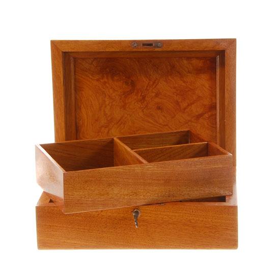 Beautiful Craftsmanship; Rare Inlaid Burl Wood; with key lock 10.5" X 8" X 3.5"