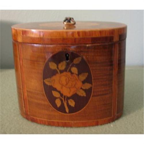 Georgian Tea Caddy, Rare Oval shape with cross banding,
