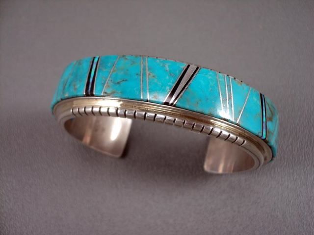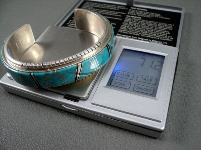 Inlaid Turquoise and Sterling Silver Bracelet- Marked M. Weight: 71.2 Grams Retail: $ 1,200.00