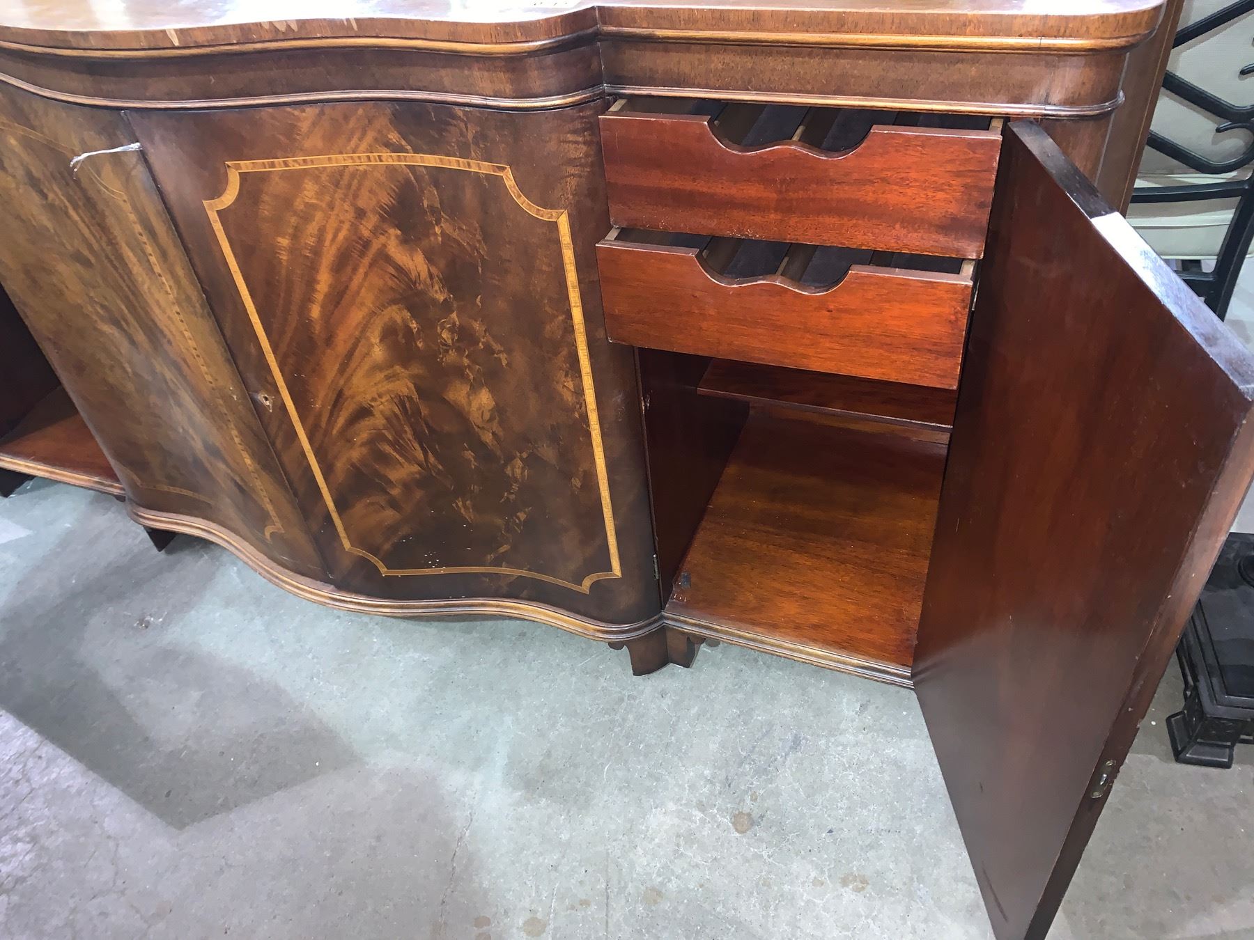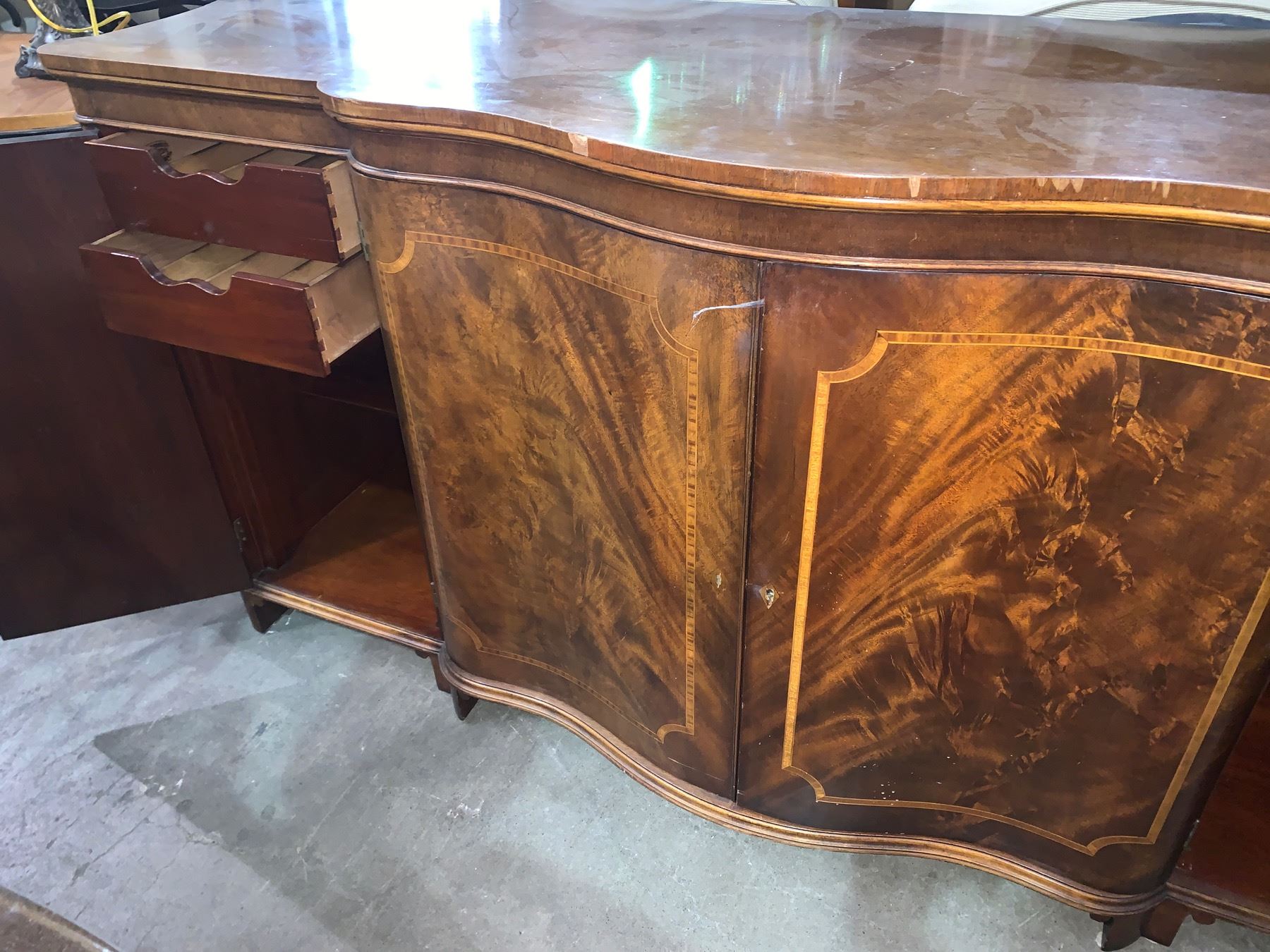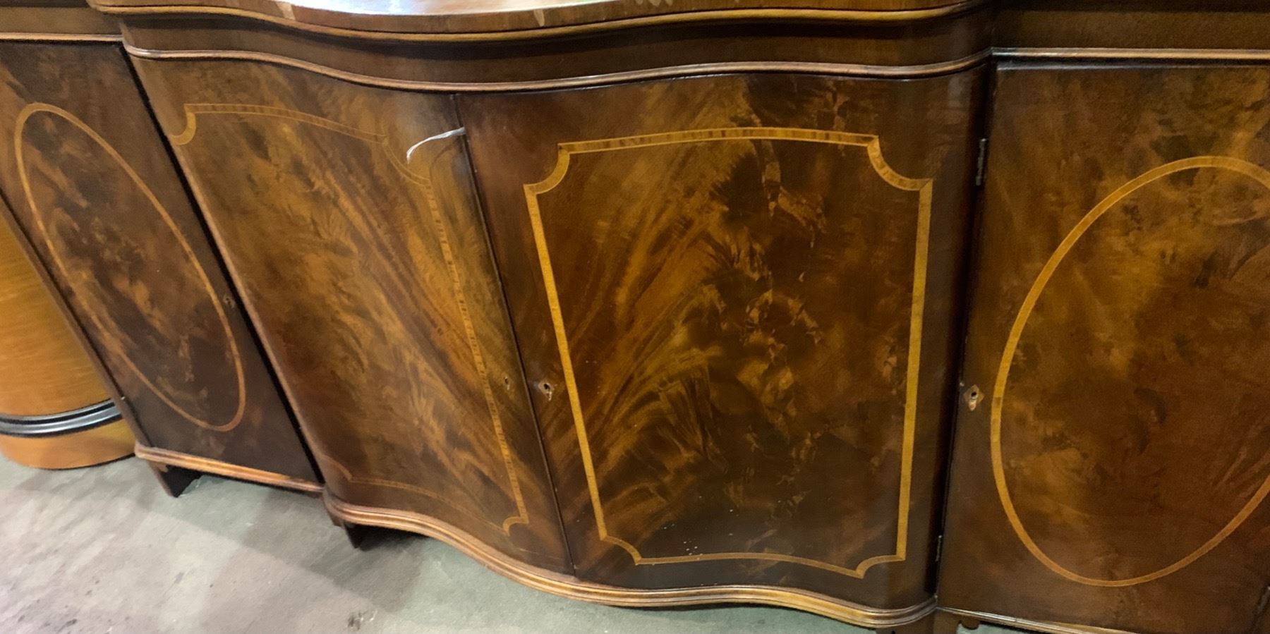 Inlaid Walnut Curved Front Sideboard 73in. W