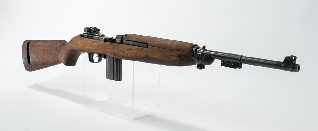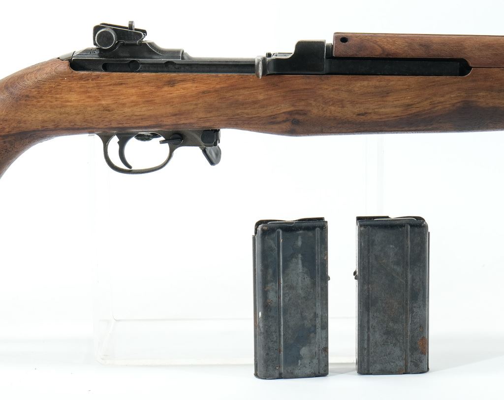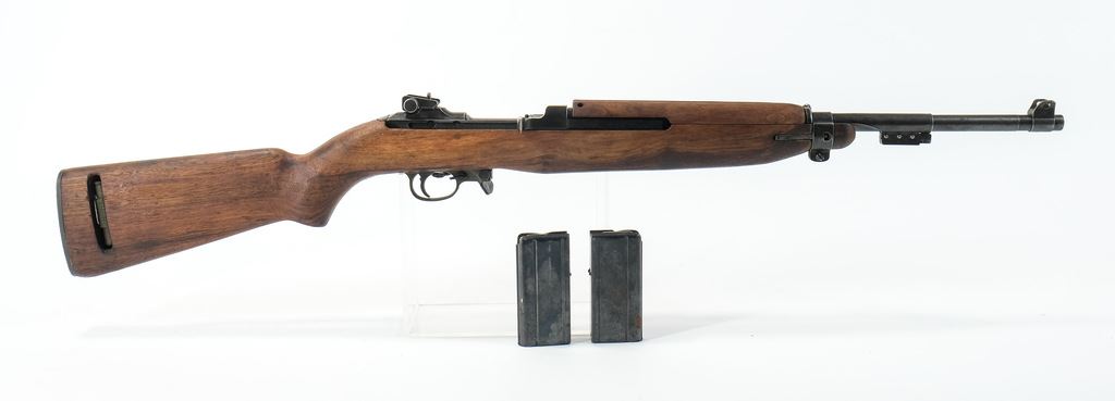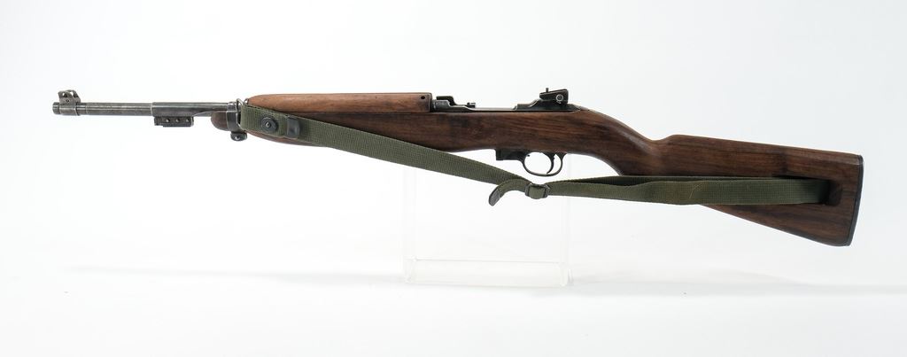 Inland Div. U.S. M1 Carbine semi auto rifle chambered in .30. This example with serial number 433001 and dating to 1942 features a barrel marked "UNDERWOOD" WITH FLAMING BOBM, type 3 barrel band, late war, adjustable rear sight and flat top bolt. The oval cut, low wood pot belly type straight stock with M2 cutout is marked "IO" and retains a faint, cross cannon cartouche. Overall a very nice example with late war features showing typical wear. The stock, which shows signs of being sanded, is in nice condition with a few minor marks from handling. Included is a M1 carbine type sling and oiler. C&R Eligible.