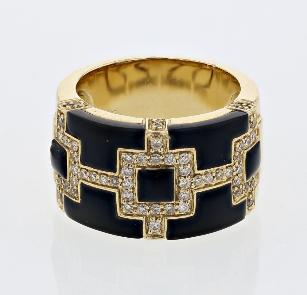 Inlay Onyx Diamond Ring in 14K Yellow Gold | 335088 6.5 Grams, featuring White Diamond Round ct 10 0.47 ct 60 ct 14 ct