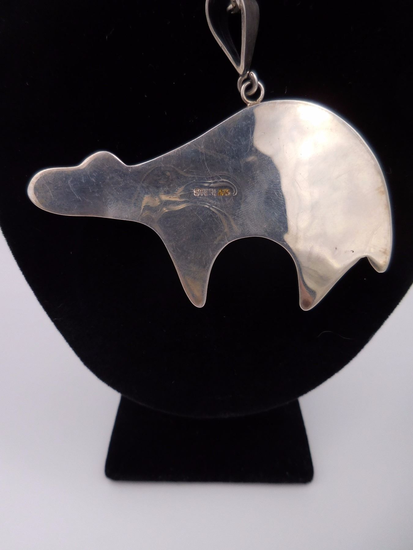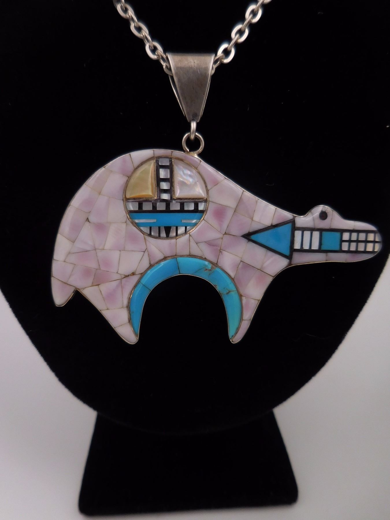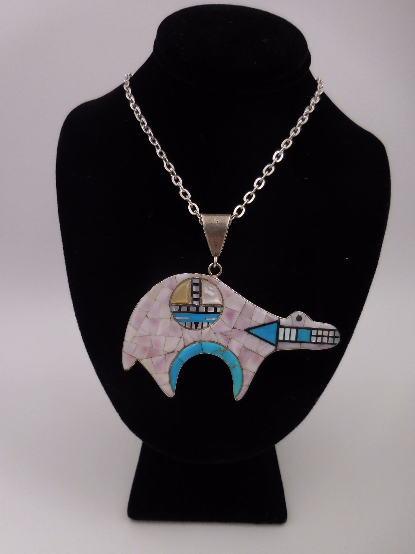 Inlay Bear Necklace (Stamped Sterling) - Total Weight: 27.43G