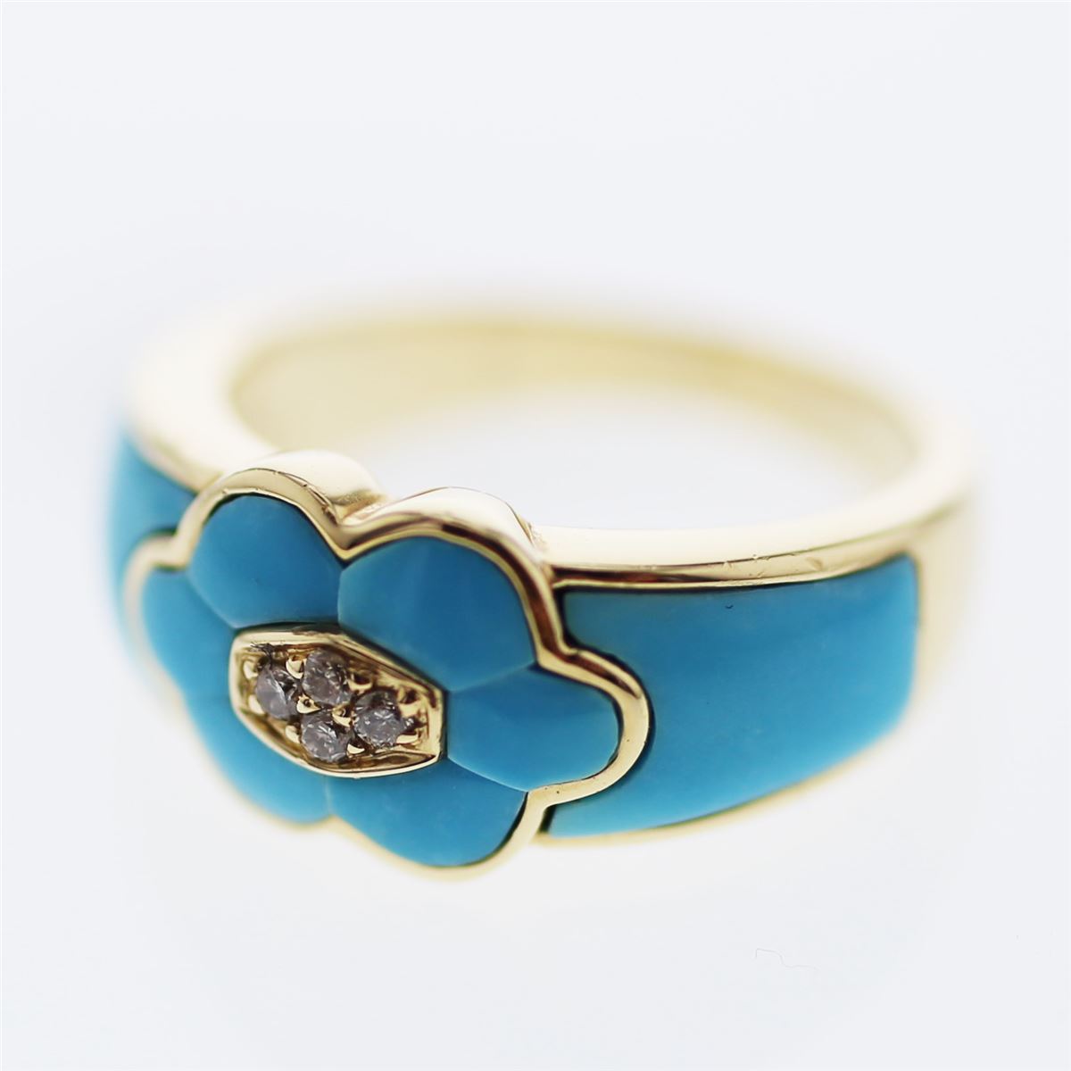 Inlay Turquoise Diamond Ring in 14K Yellow Gold