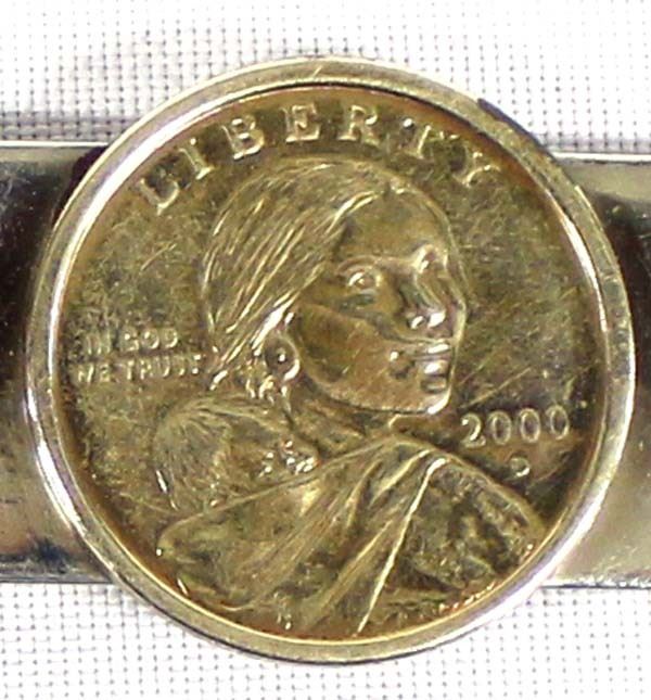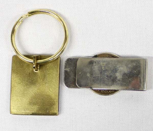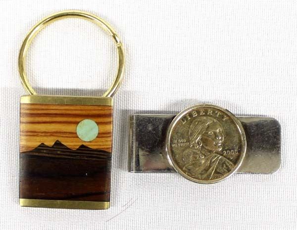 Rich Wood and Turquoise Inlay Keyring & 2000 Sacagawea Dollar Money Clip, largest measures 1'' x 2''