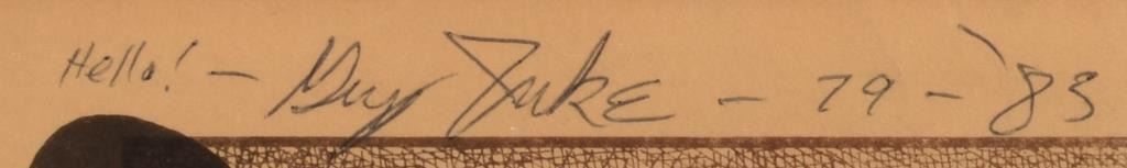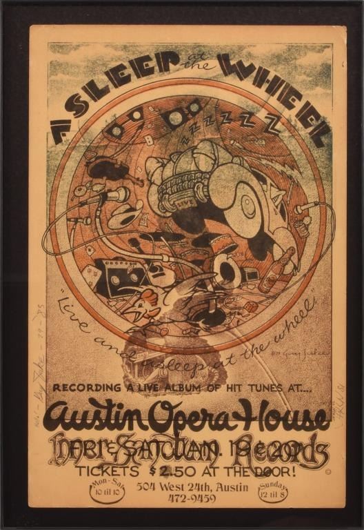 Inner Sanctum poster by Jim Franklin with a Asleep At The Wheel poster period printed over top of it. Signed by Jim Franklin & Guy Juke 17.5" x 11.5" Unusual