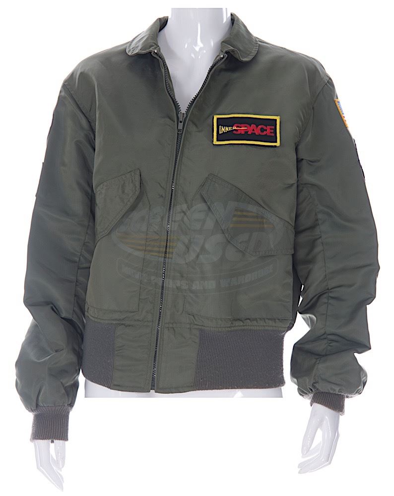 (Amblin, 1987) Jackets like this were given to members of the ILM team that worked on the film. The size small flight jacket has an embroidered patch of the film's logo attached to the left chest and the American flag and Warner Bros. patches attached to the arms. This is a very rare jacket that was only given to members of the ILM crew that worked on the film and was not sold to the public. Minor wear from use is present.