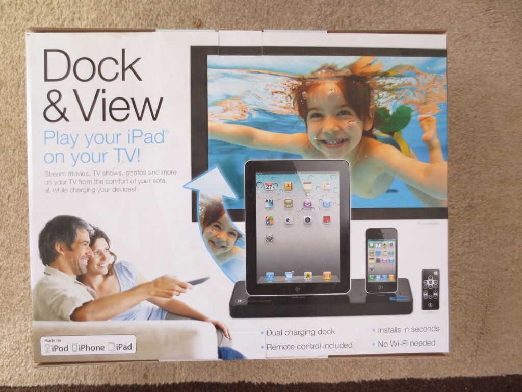Innovative Technology iPad Dock & View ITITV-2012 Play your iPad, iPhone, or iPod on your TV! Stream movies, TV shows, photos, and more on your TV or monitor!, Dual charging dock, High-definition composite cables included, No Wi-Fi needed!, Sleek, modern design, Full-function remote control included,