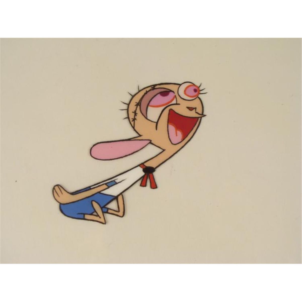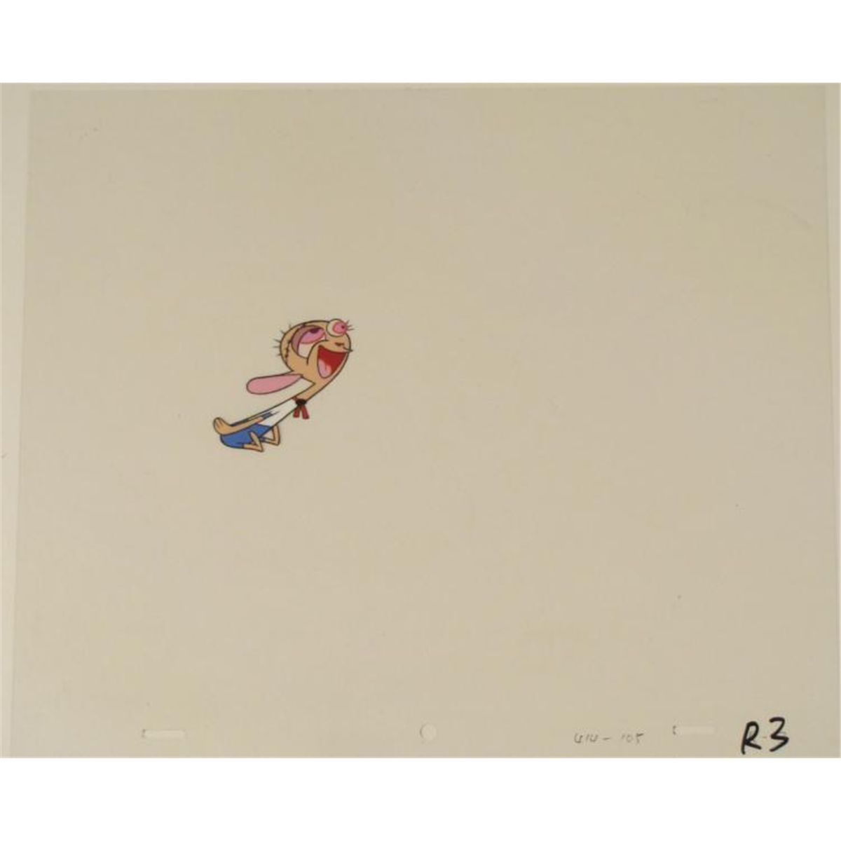 This is an original production animation cel from the Nickelodeon TV show Ren & Stimpy. The show follows two characters - Ren, a crazy Chihuahua - and - Stimpy, an incredibly stupid cat - as they think up to all kinds of hair brained schemes and get themselves into some sticky situations. The Ren and Stimpy Show debuted in August 1991 with a two-part episode, 'Stimpy's Big Day / The Big Shot' and became an instant hit. It was the third Nicktoon ever to be aired on the Network alongside Doug and Rugrats. * Ren is insane * Original Production Art Cel Overall Size of the Cel: 10 1/2" x 1/2" Very Good condition This is an original hand-painted cel set-up used in the production of an episode of "The Ren & Stimpy Show." Each one-of-a-kind set-up represents a slight change in position of the characters. When individually photographed and projected in rapid succession, the images appear to move. * To create production cels, the original animator's drawing is transferred onto an acetate cel (by hand-inking and/or photo copying). The cel is then hand-painted on the reverse side. * The cel received by the winning bidder may be ever so slightly differenet then the one shown in the auction photo. * The cel is ready to be matted and framed. The animator's notations are shown at the bottom of the cel. *