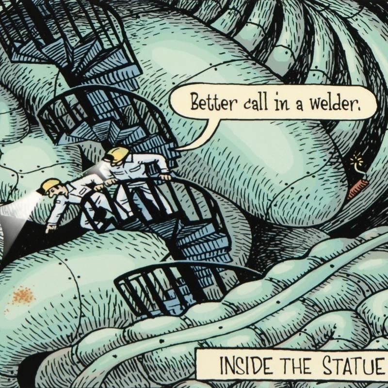 Enter a surreal and satirical world of twisted imagination and award winning creativity. "Inside Liberty" is a limited edition giclee on paper by Dan Piraro, creator of the critically acclaimed and award winning comic strip, Bizarro! This piece is framed, numbered and hand signed by the artist! Includes Certificate of Authenticity! Measures approx. 22" x 15" (with frame), 15" x 8" (image).