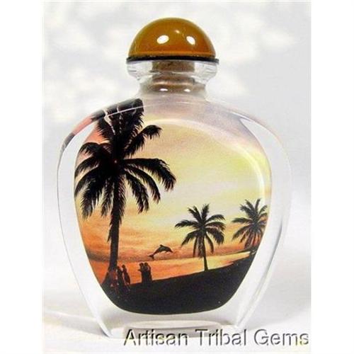 Crystal Inside Painting Snuff Bottle FLORIDA LANDSCAPE ... Inside painting at it's finest! A magnificent portrayal of the untouch glory of nature. Who could resist? Nature's background presented in astonishing details and electrifying color. Simply an awesome creation worthy of the most seasoned collector's attention. The photos clearly illustrate the magnificent craftsmanship. The bottle has measurements of 66mm in height, 49mm in width with a depth of 22mm. For those not familiar with metric 25mm=1". Gram weight is 96.2. Worthy of serious consideration. (d399)
