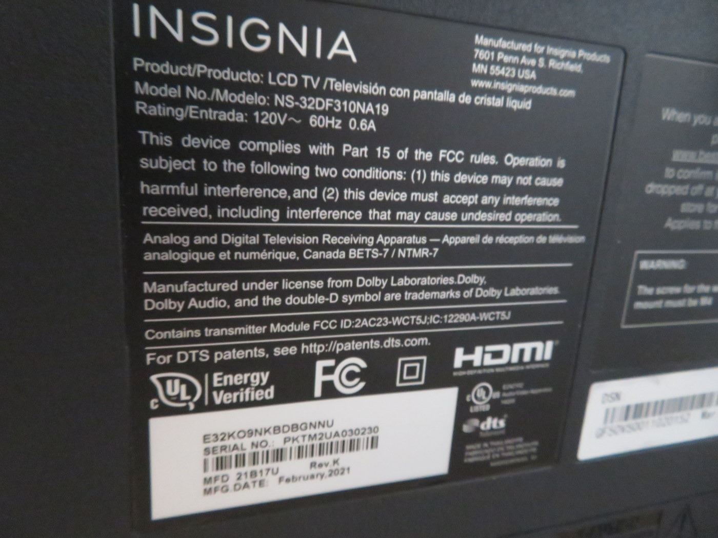 Insignia 32" Flatscreen TV