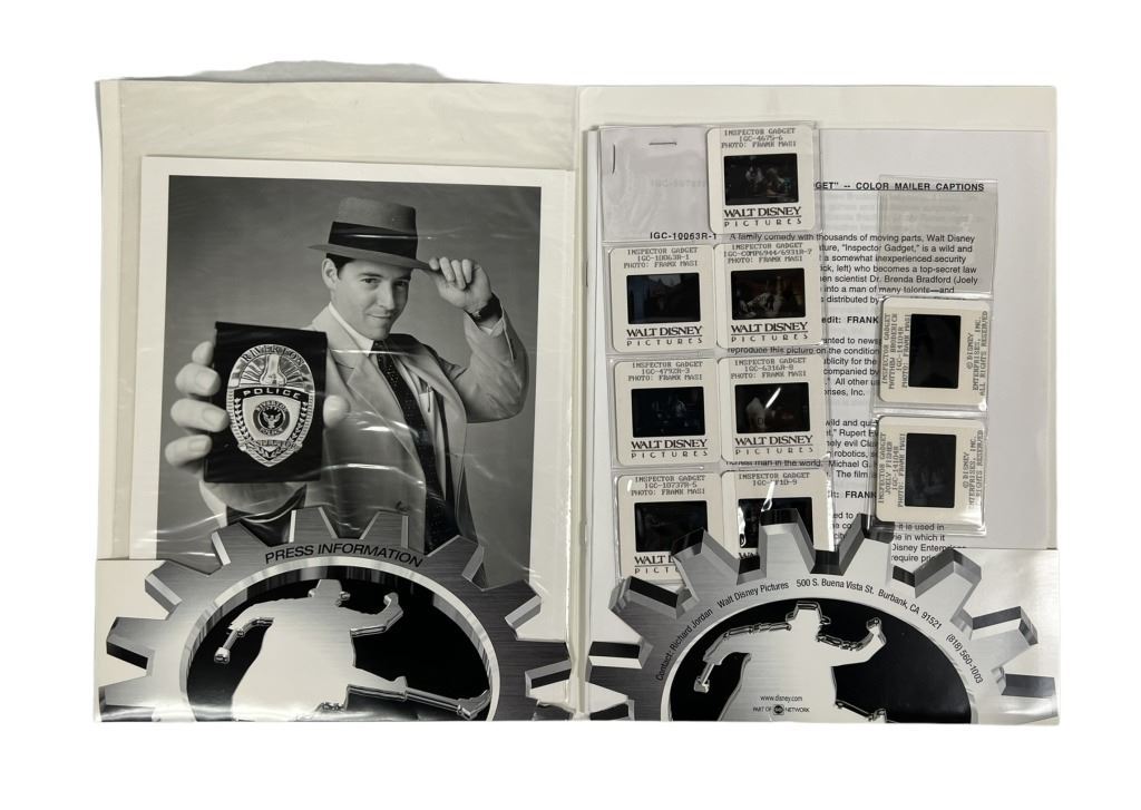 Original press book from the David Kellogg directed superhero comedy film 'Inspector Gadget' (1999), Loosely based on the 1980s animated television series of the same name, the film stars Matthew Broderick as the title character, Rupert Everett as Dr. Claw, Michelle Trachtenberg as Penny and Dabney Coleman as Chief Quimby.