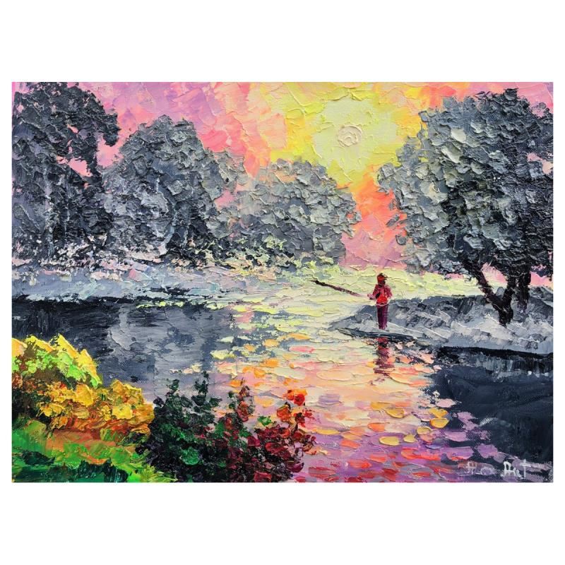 "Inspired By Sunset" is an original oil painting on stretched canvas by Alexander Antanenka. Hand signed by the artist, the piece comes with a letter of authenticity. Measures approximately 12" x 16" (image). There may be scuffs on the edges and corners which would be concealed when framed.