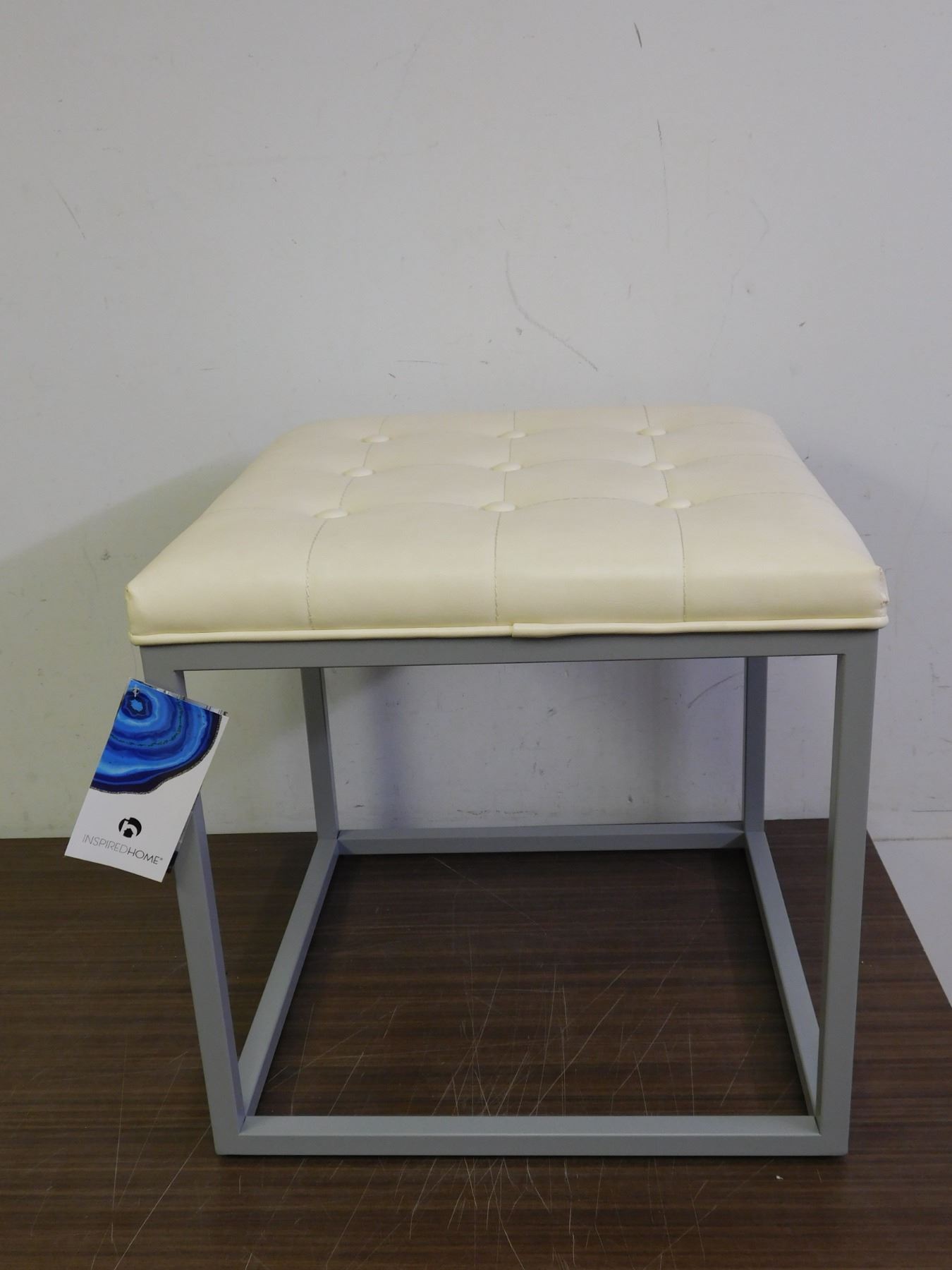 Inspired Lucas Button Tufted Cream Leather Ottoman / Stool BRAND NEW
