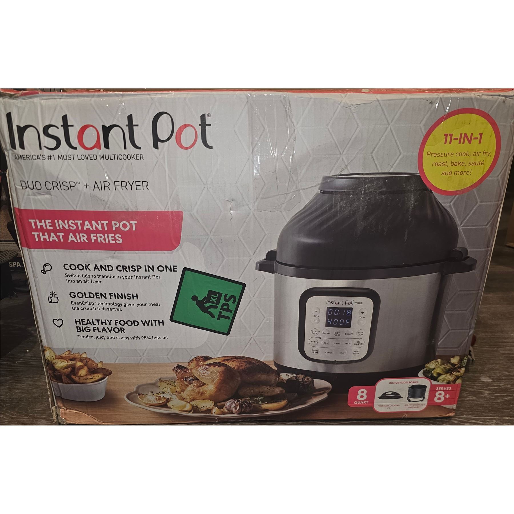 11-in-1 multicooker with 8-quart capacity, features pressure cooking and air frying capabilities, new.