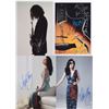 Four photos: a color glossy 11 x 14 photo of a guitar, signed in ink and felt tip by eleven jazz legends: John McLaughlin, Pat Martino, Pat Metheny, Larry Carlton, Al DiMeola, Earl Klugh, Larry Coryell, Eric Johnson, John Abercrombie, Mike Stern, and John Scoefield; a color glossy 11 x 14 three-quarter-length profile photo of Kenny G holding his saxophone, signed in silver ink; a color satin-finish 11 x 14 photo of Sarah Chang holding her violin amidst swirling snowflakes, signed in blue felt tip; and a color satin-finish 11 x 14 photo of Chang seated on the arm of a couch, violin in hand, signed in blue felt tip. In overall fine condition.