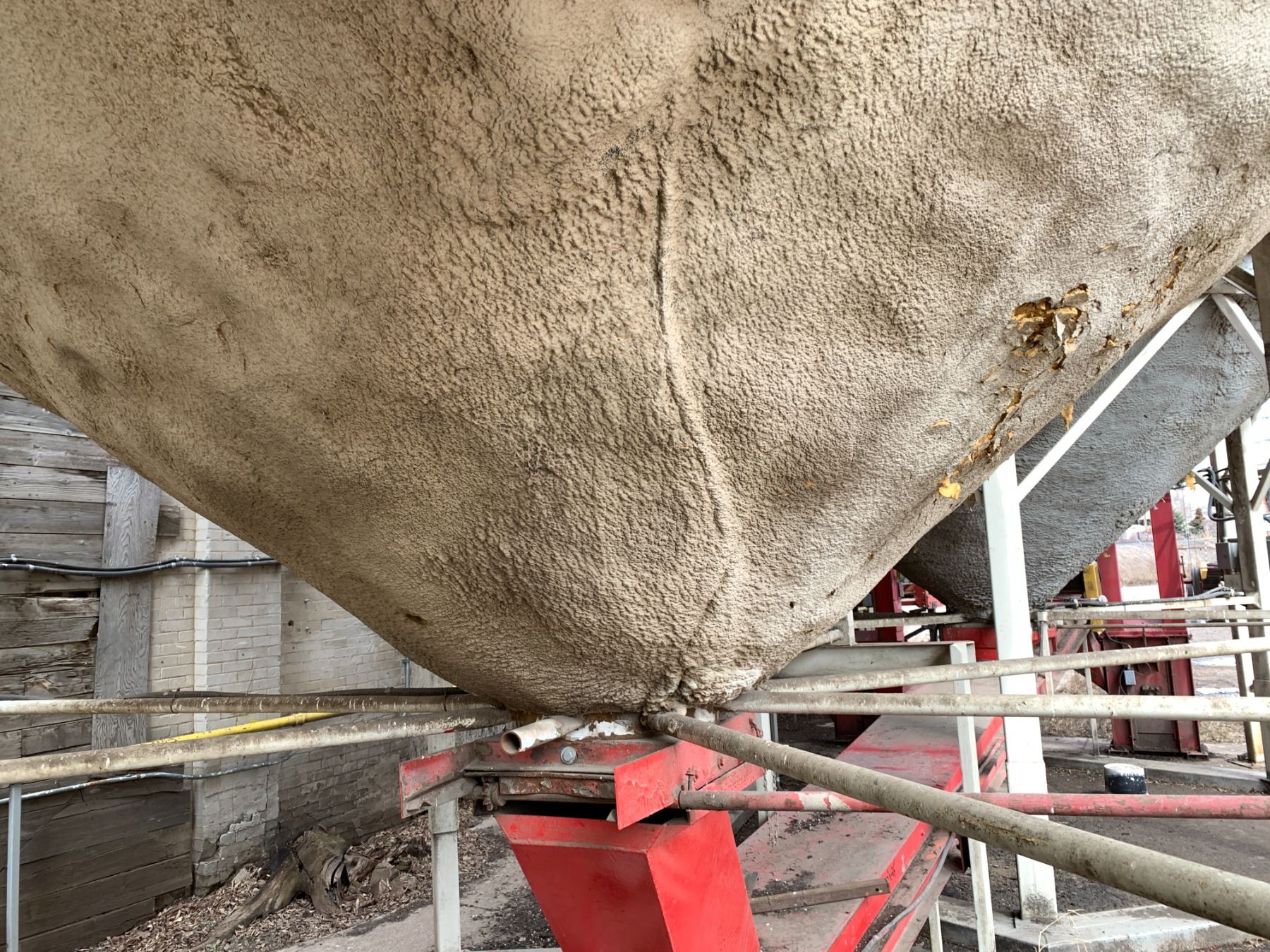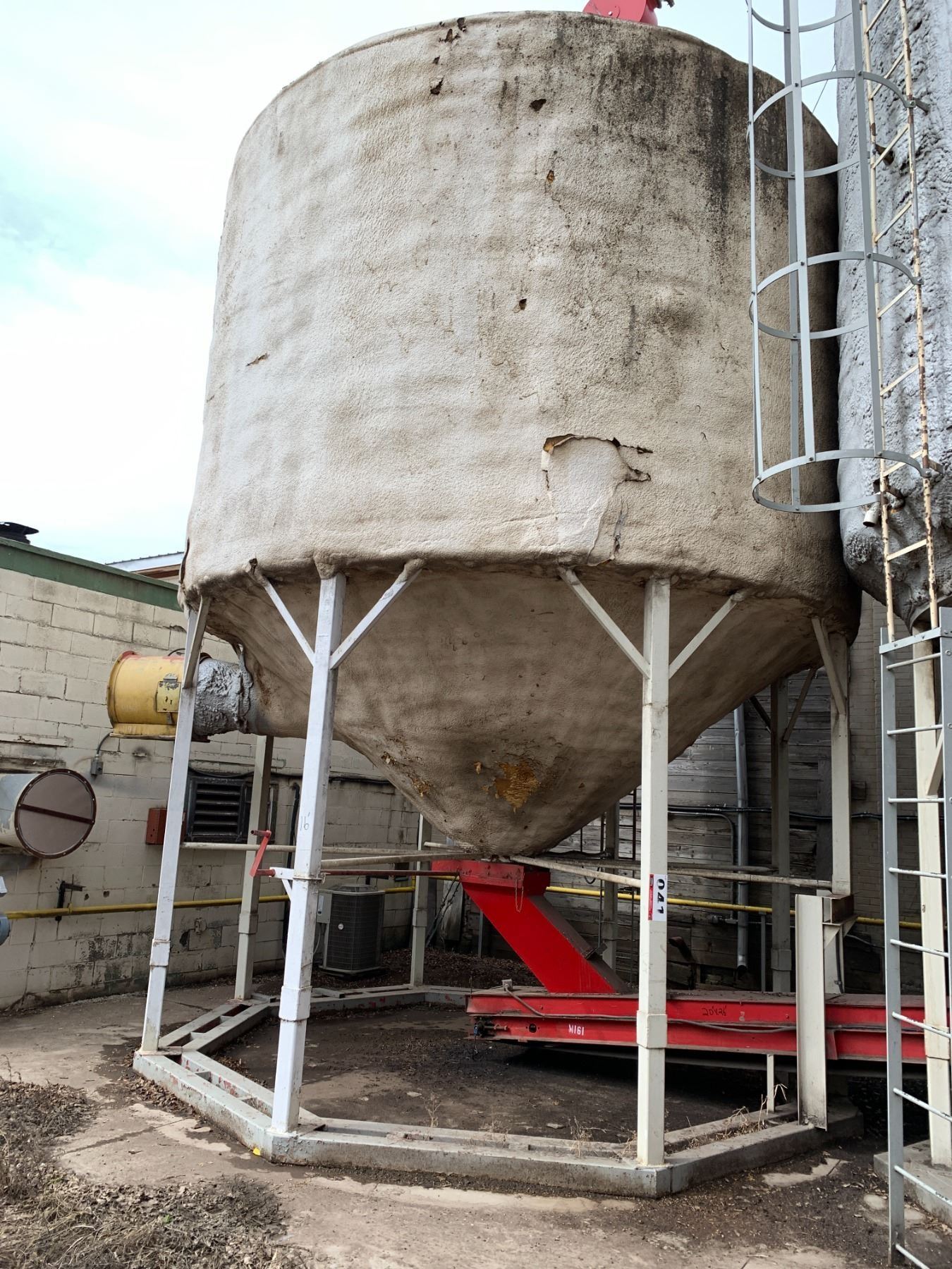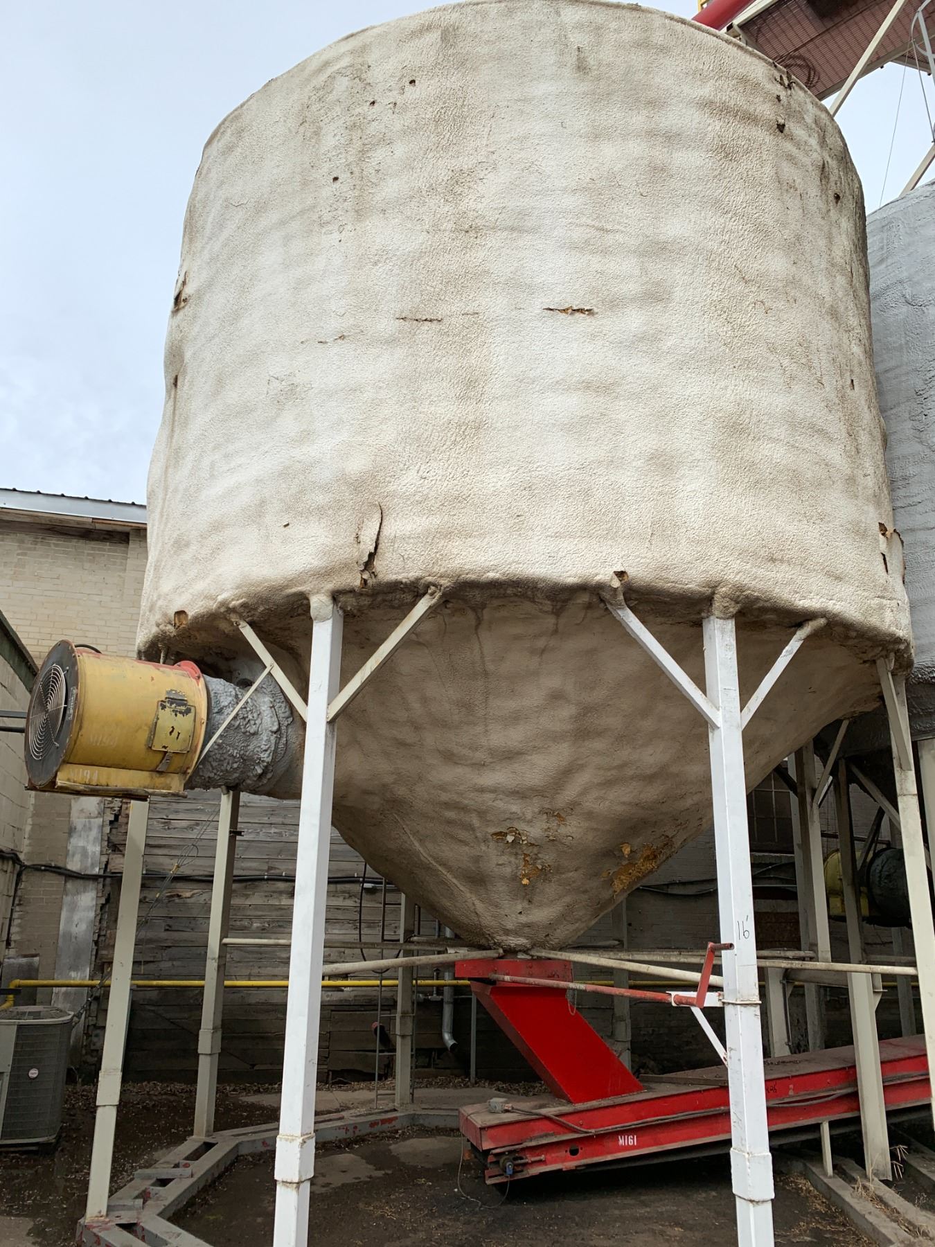 Insulated Smooth Wall Hoppers Bottom Bin with Aeration Fan - 16' Diameter Approx 10' High + Hoppers - Purchaser is solely responsible for dismantling and removal of all lots. Lots 43, 44, 45, and 46 are to be removed first, Lots 1 - 42 are to be removed second all remaining lots removed after Lots 1 - 46.
