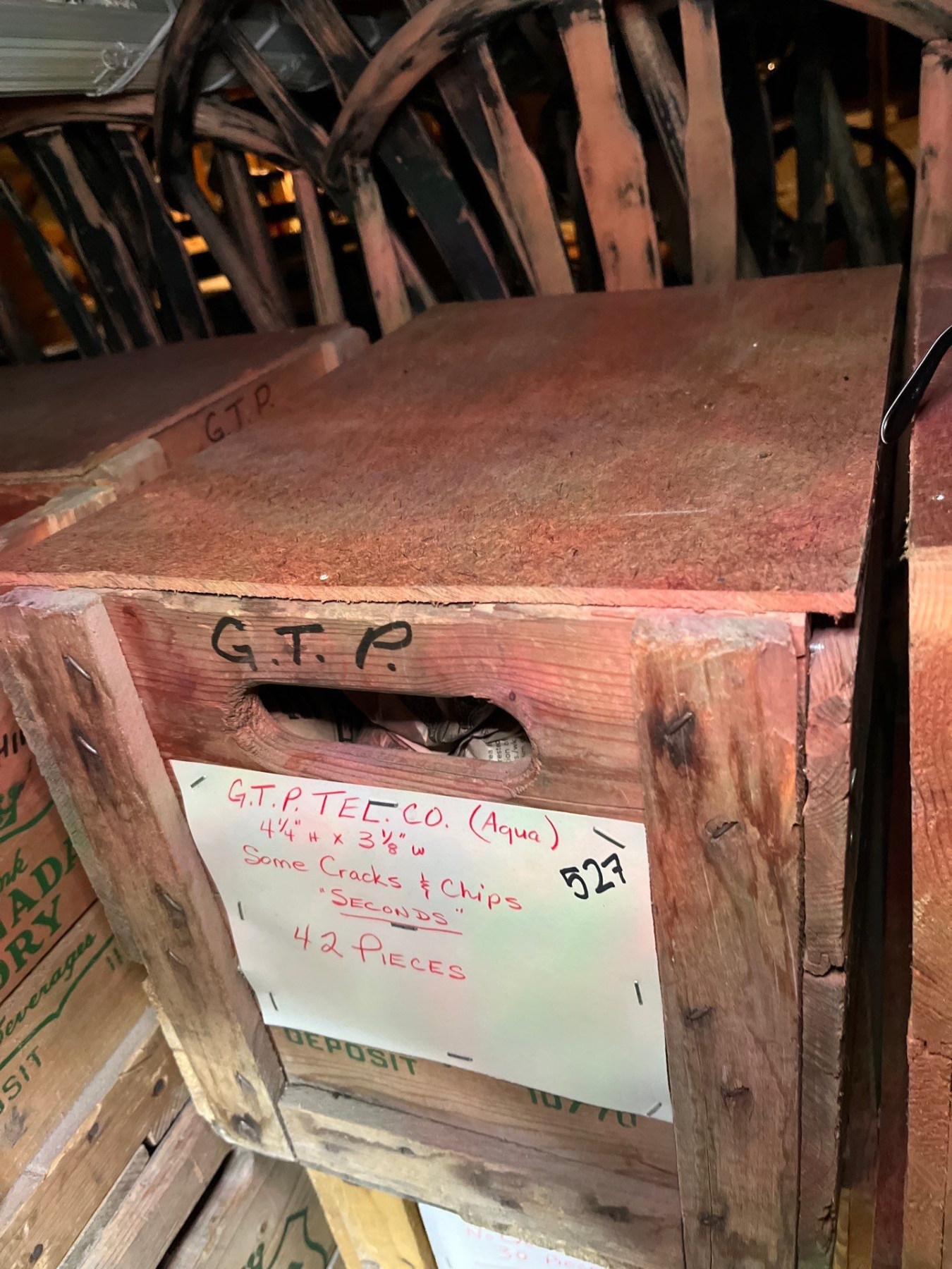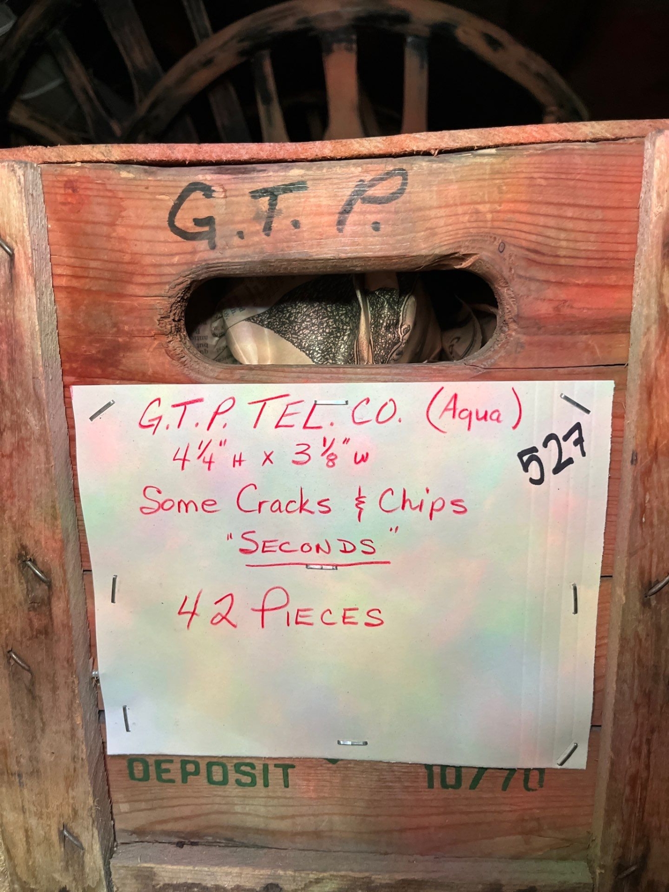Insulators G. t.ptel..co aqua 41/4 h x 3 1/8 w some cracks and chips seconds 42 pieces..