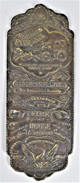 Insurance Advertising Embossed Metal Fire House Door Push. San Francisco. 3 7/8 X 10 inches.