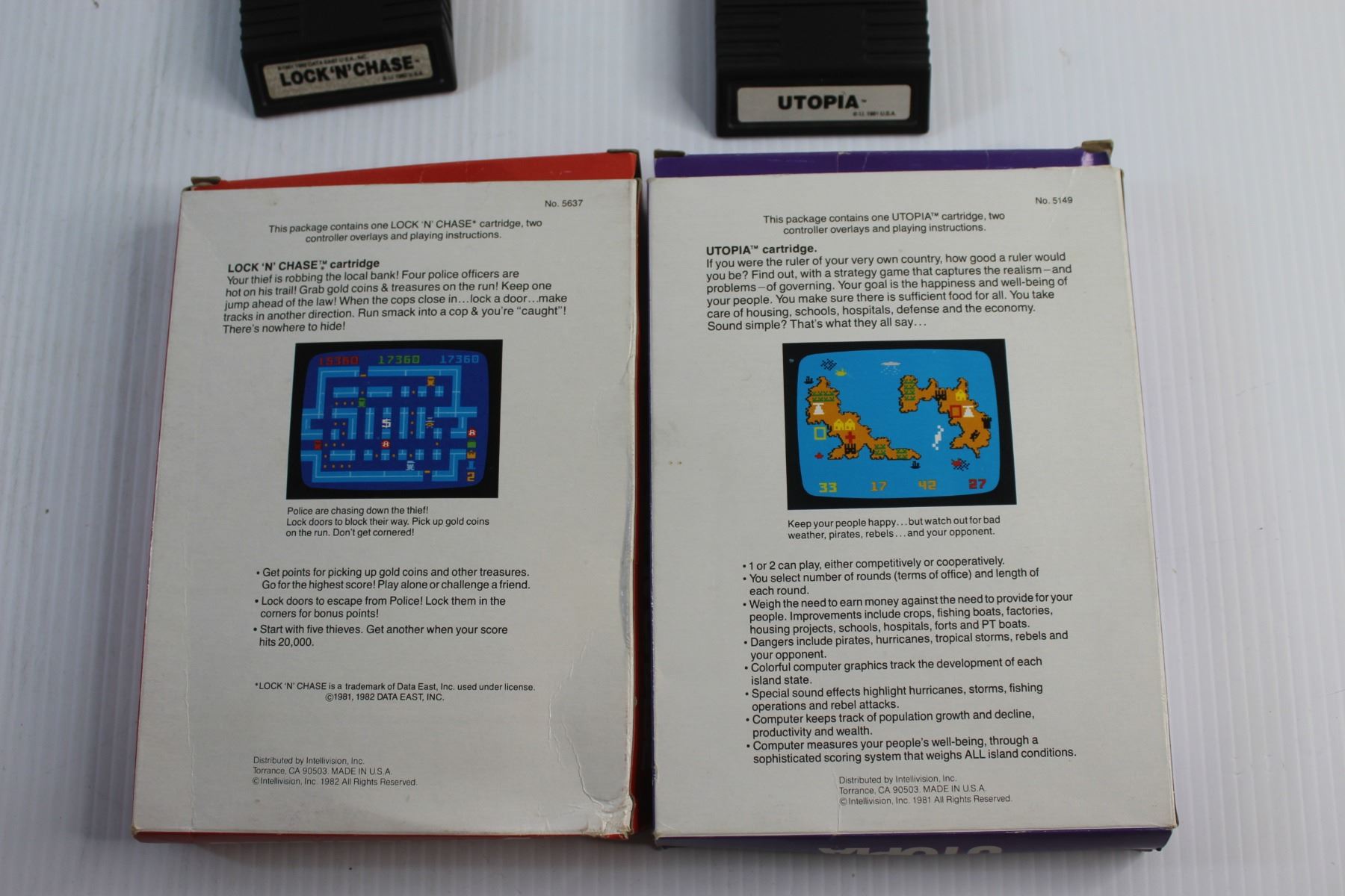 Intellivision Lock 'N' Chase & Utopia Game Cartridges