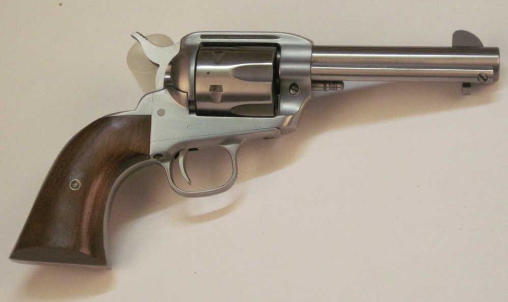 Condition: Excellent with little sign of use buSN:J0029, Nice single action 6 shot revolver. Stainless steel construction, smooth wood grips, 5" barrel with fixed sights, recessed cylinder, good bore and action. Condition: Excellent with little sign of use buthas been fired.