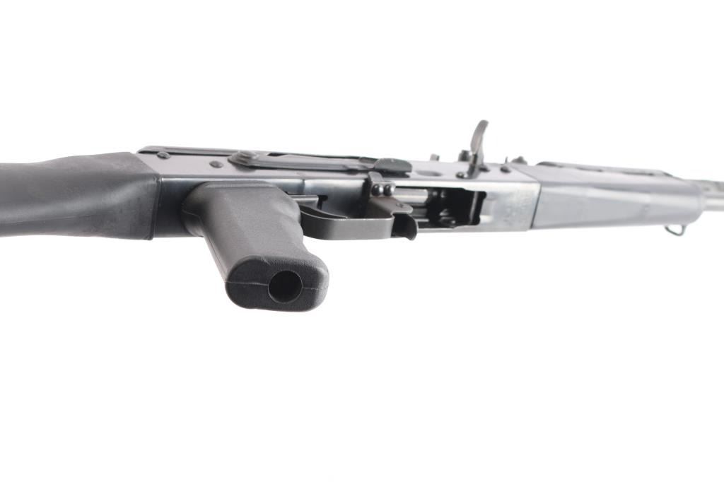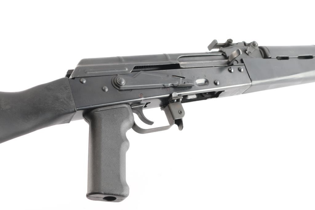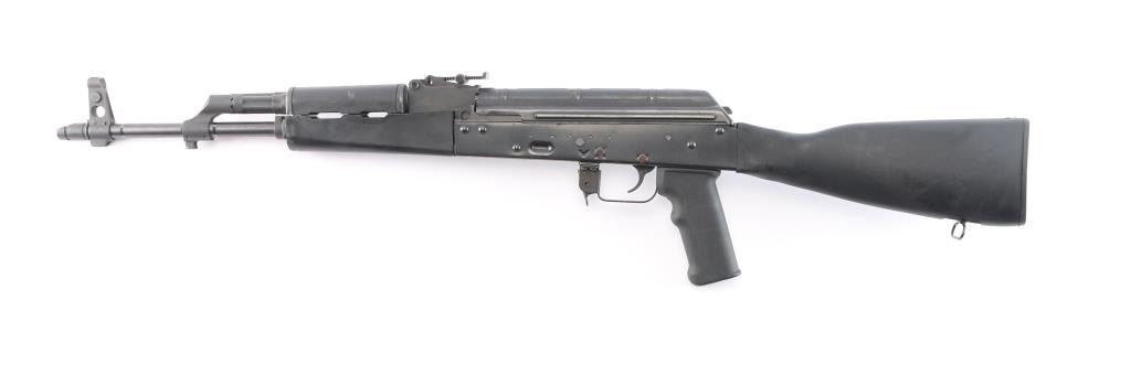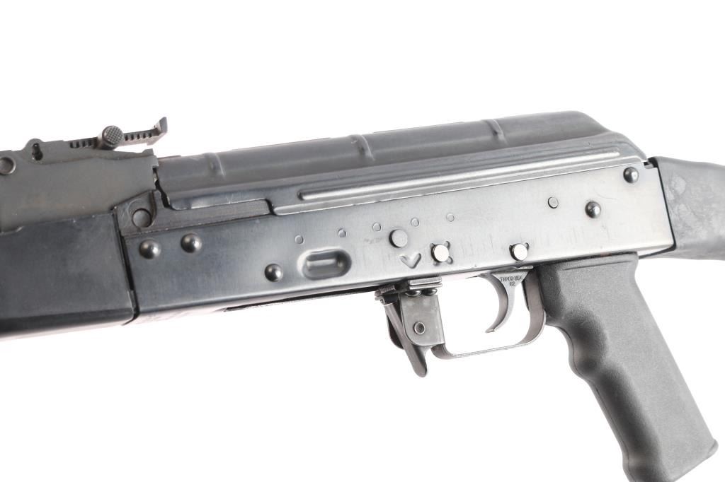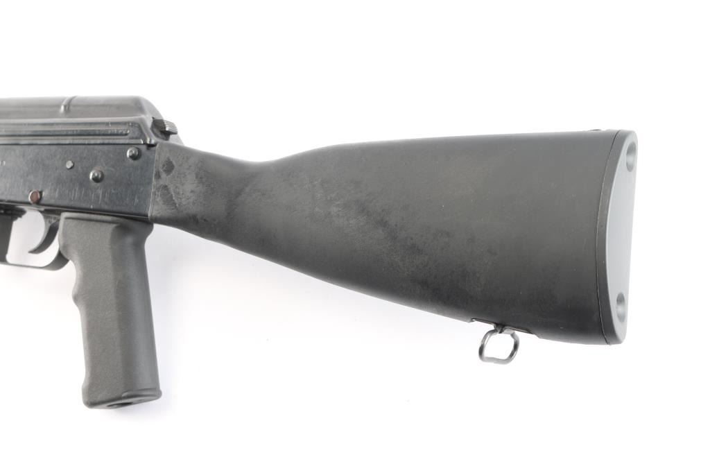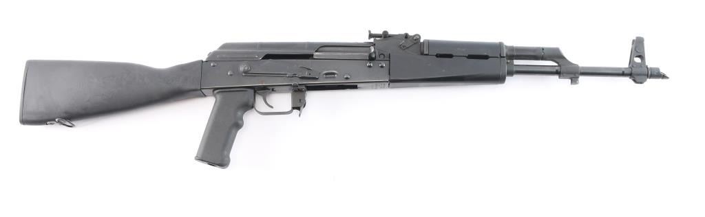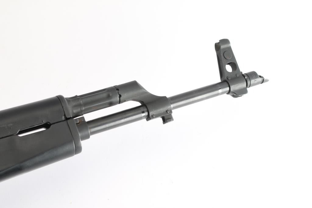 AK-47 style semi-automatic rifle chambered in 7.62x39mm. 16.5" barrel with Tapco slanted muzzle brake, protected front sight post and tangent rear sight, blued stamped steel receiver, manual safety and Tapco G2 trigger and hammer, magazine release lever, black polymer furniture. Retains 95% of its metal finish showing contact wear on the receiver & bolt and some minor rust. Bore is excellent and bright. Action is crisp/tight. no magazine.