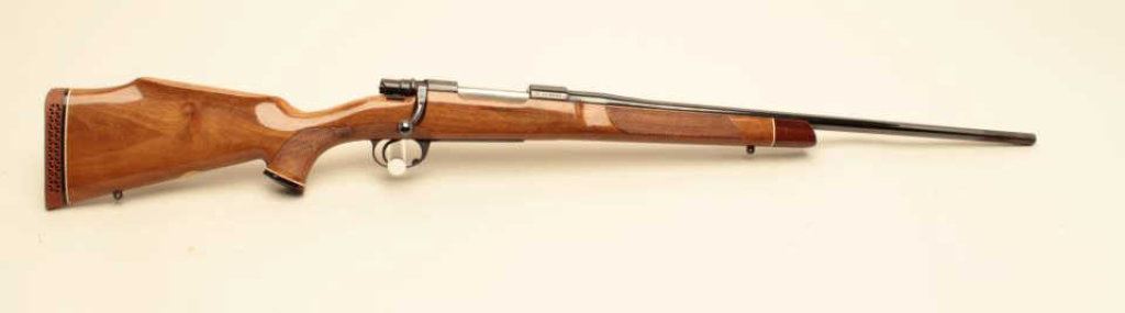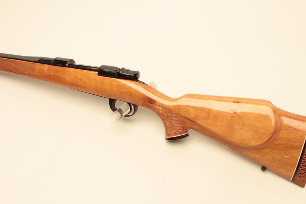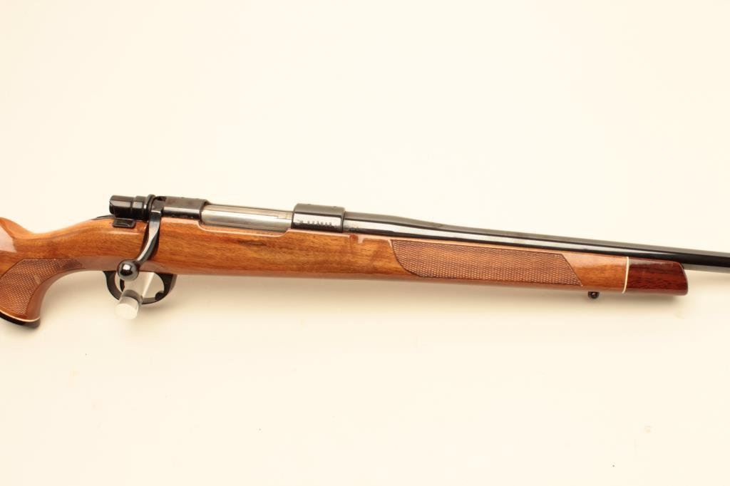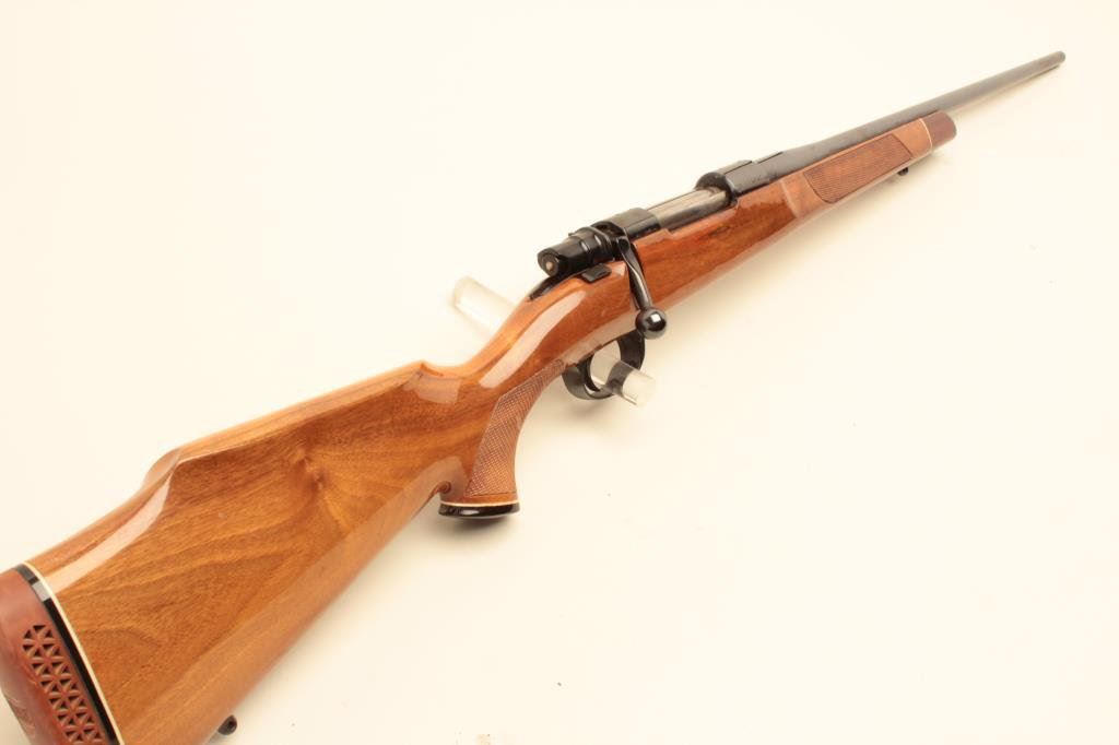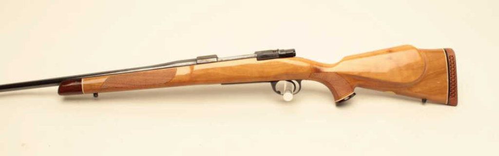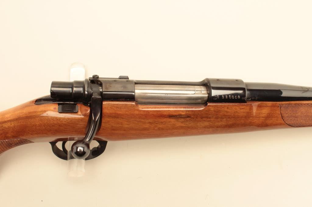 barrel, blued finish, checkered wood stocks, S/N 221612, in overall very good + condition showing the majority of its blued finish, crisp action, sharp markings, good bore and very good wood stock with Interarms red hard rubber butt pad. (Modern). Est.: $400-$800.
