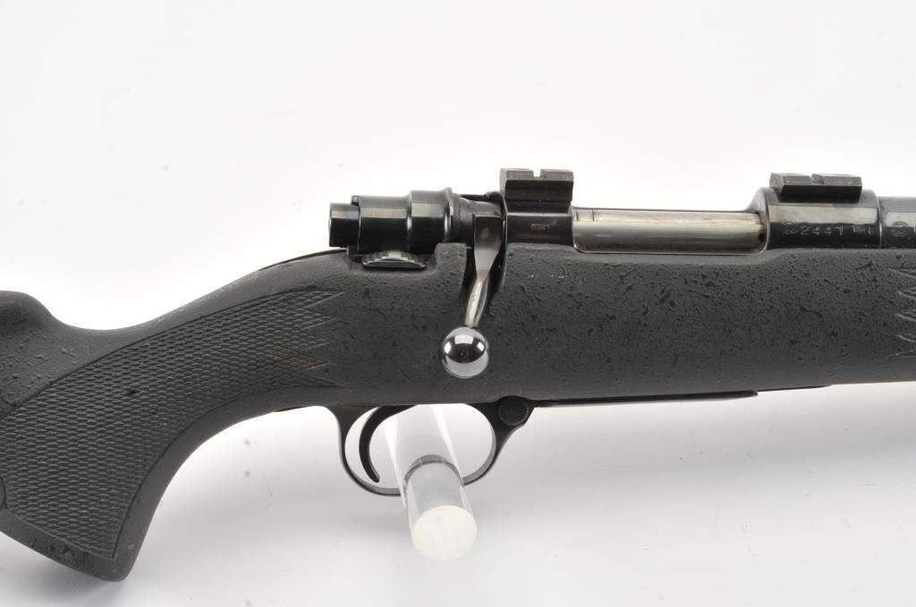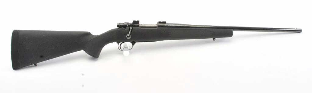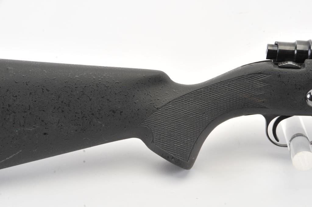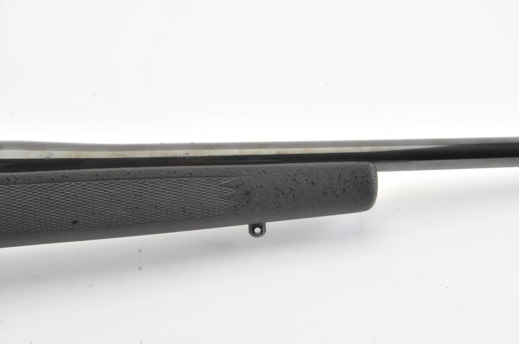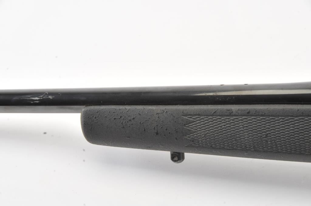 Interarms Mark X bolt action rifle, .223 Remington caliber, Serial #2441. The rifle is in good overall condition with a 20” barrel. The metal surfaces retain the majority of their blue finish with the frontand rear sights removed, numerous English proofs and acceptance marks at the front ring and Weaver bases added. The action is not functioning at the time of description and should be inspected by a competent gunsmith. The Bell & Carlson textured synthetic stock is in very good condition showing little use. The bore is dirty and may clean to good. Est.: $300-$600. (Modern).