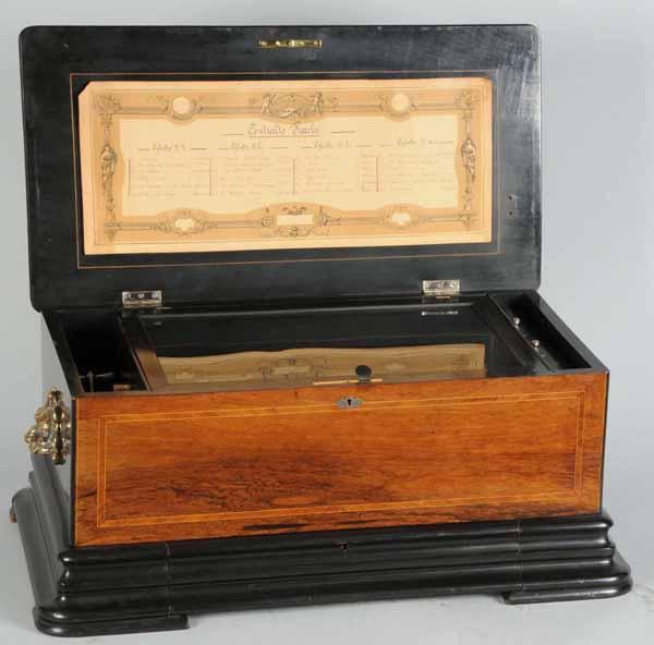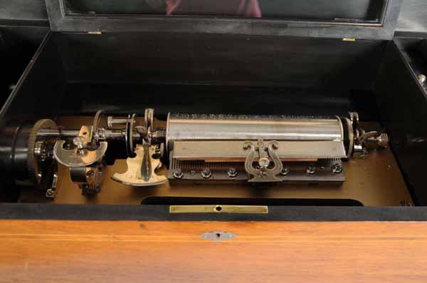 Description Includes 4 - 6 tune cylinders, inlaid box, with zyther. Working. Condition (Refinished). Size Cylinder: 9" L.